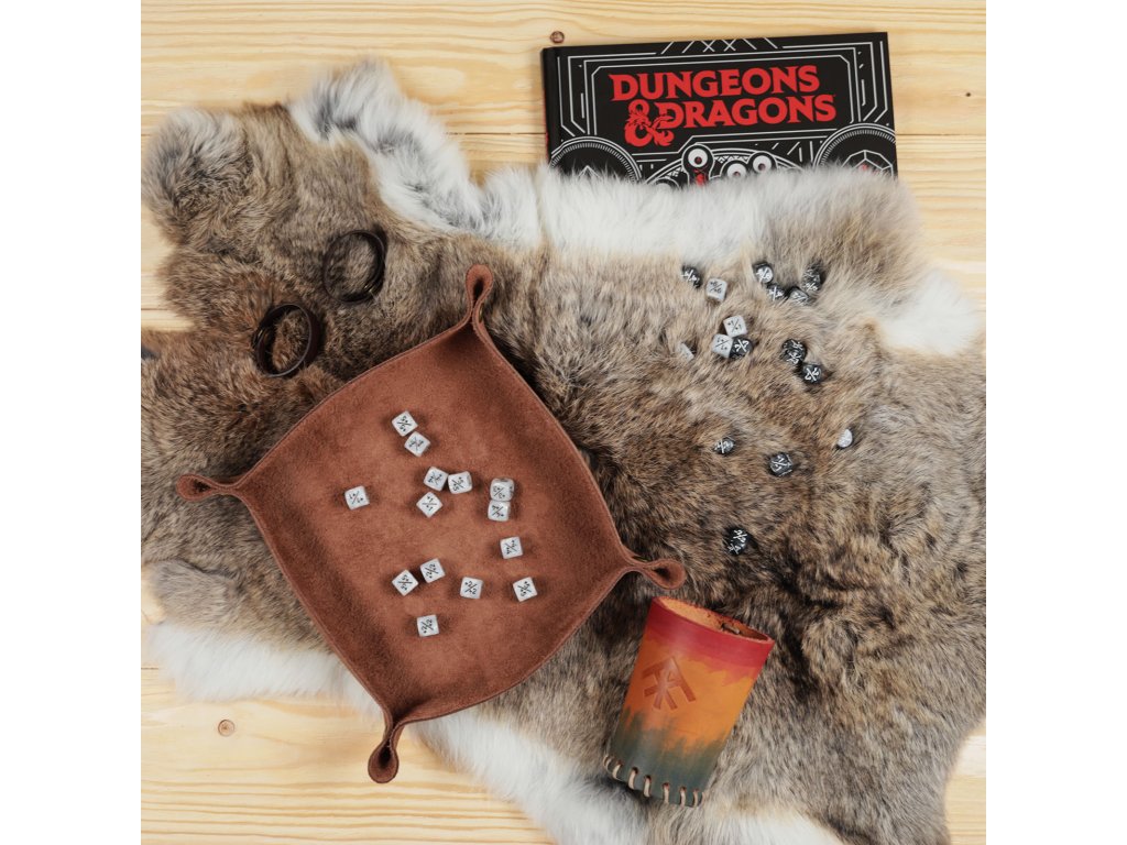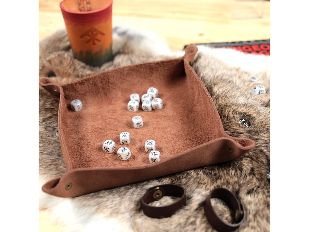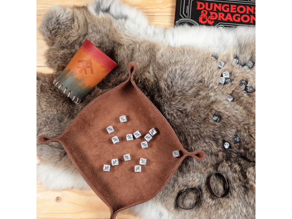 Podložka vyrobená z hovězí kůže Velur, která se perfektně hodí pro hraní RPG i k deskovkám. Podložku na házení kostek snadno stočíš do ruličky, sepneš kovovými druky, hodíš do batohu a můžeš vyrazit na cesty. Díky stylovému dice trayi už se ti žádná kostka nezakutálí z dosahu a můžeš ji bez obav využít pro hody kovovými kostkami. Perfektní dárek pro vášnivé hráče deskovek a Dungeon Mastery. Rozměry: zavinuté: 25 x 4 cm v rozvinutém stavu: 25 x 25 cm složené: cca 17 x 17 x 4 cm
