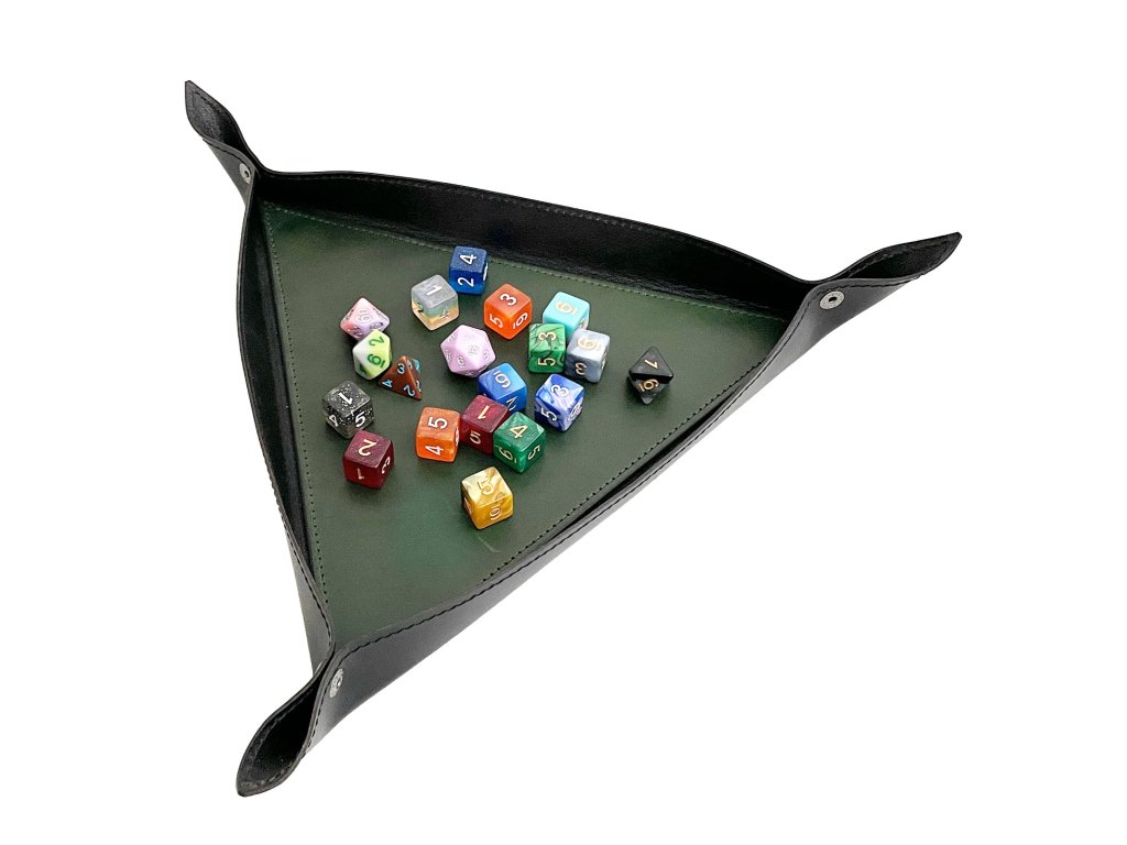 Stylový a praktický doplněk pro každého hráče! Trojúhelníkový Dice Tray z pravé kůže je ideální volbou pro každého milovníka RPG a stolních her, který hledá stylové a funkční řešení pro házení kostek. Díky velikosti a pevného materiálu zajistí, že se ti kostky nestratí a nezničí. Navíc je vizuálně originální! Dice Tray má rozměr 26 x 23 cm. Každý kus je ručně vyráběn v naší vlastní dílně. Použitá kůže je příjemná na dotek a snadno se udržuje. Na výběr máš ze tří barevných variant – zelené, modré a červené. Ať už chceš ladíš barvami své armády, nebo jen chceš užitečný doplněk do své RPG kampaně, tenhle Dice Tray tě nezklame.