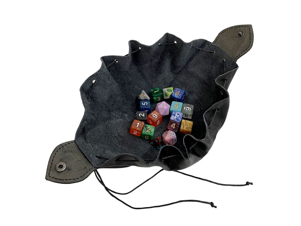 Kostky rozhodují o životě i smrti – a proto si zaslouží místo, které je hodno jejich moci! Náš kožený váček na házení kostek je ideální společník pro každého hráče, dobrodruha i sběratele, který nechce nosit své herní poklady v obyčejném pytlíku. S tímto váčkem budeš vždy ve střehu! Narazil si na bestii a potřebuješ se jí zbavit? Je to jednoduché! Stačí si náš váček sundat z opasku, položit na rovnou plochu a otevřít. Jakmile ho otevřeš – promění se v funkční Dice tray. Už žádné ztracené kostky! Rozměry - 17,5 x 9 cm. Dice tray má průměr 26 cm. Na výber máš ze dvou barev: hnědé a čené. Je ručně vyráběný v naší imago dílně, z pravé hovězí kůže a zdobený naším vlastním znakem.