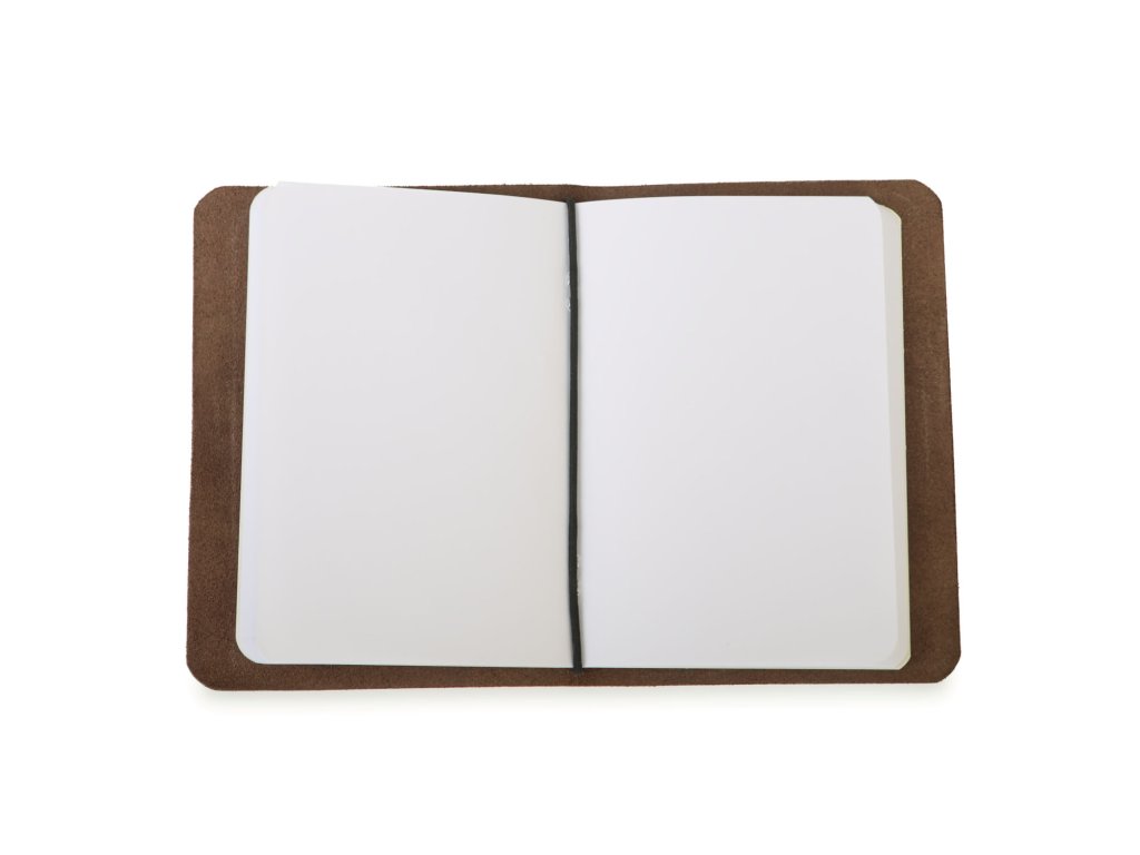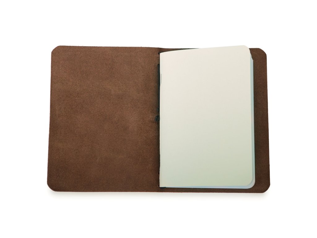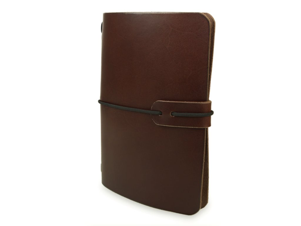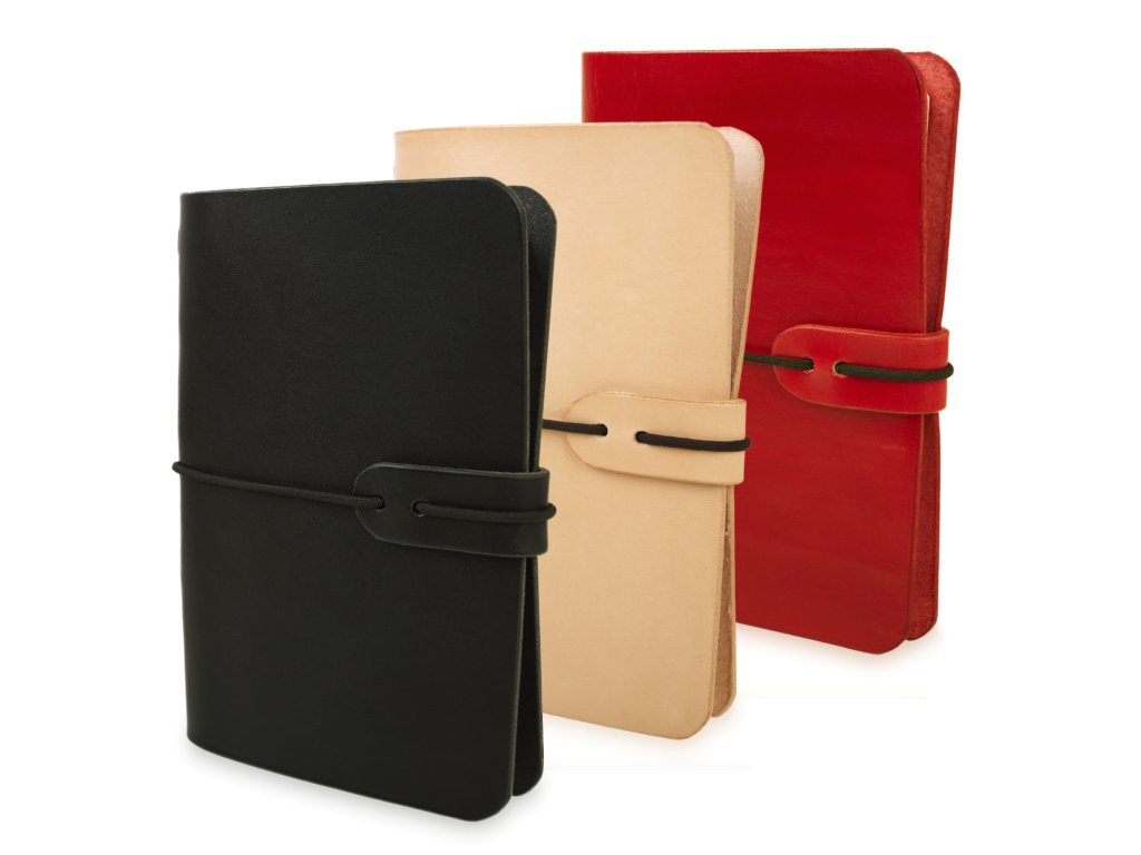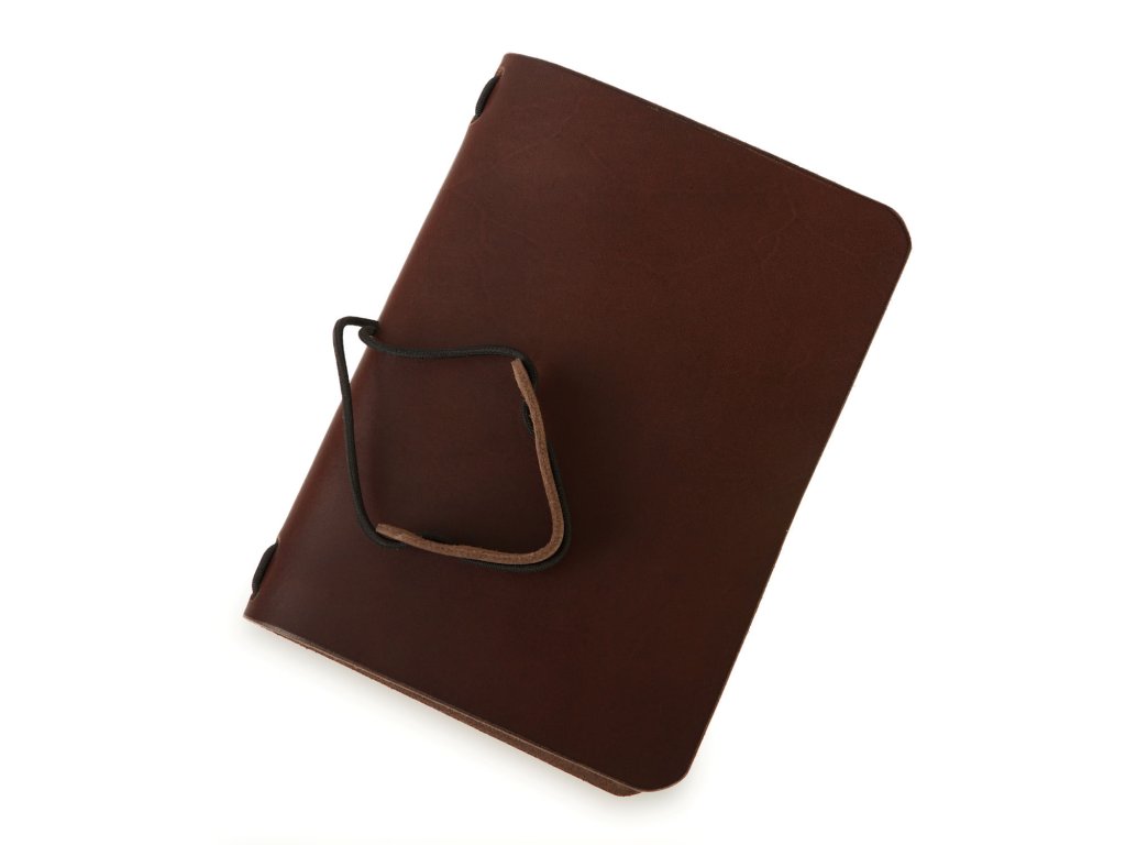 Na vaše nápady, myšlenky, kresby či verše – zápisník v koženém obalu je to pravé místo, kam zaznamenat vše důležité. Zápisník sestává z obalu, který je ručně vyroben z hovězí kůže v naší dílně, a z nelinkované náplně, která je vyměnitelná. Do obalu tak pohodlně umístíte jakýkoli sešit formátu A6. Zápisník má elegantní zaoblené rohy a je opatřen gumičkou, která zabraňuje nechtěnému otevření. Zápisník je k mání v několika barevných variantách (hnědá, černá, červená a přírodní), na přání umíme vyrobit sešit i v dalších barvách (např. zelená, modrá) a ozdobit jej ručně vyrytým motivem podle vašeho přání.