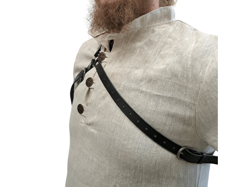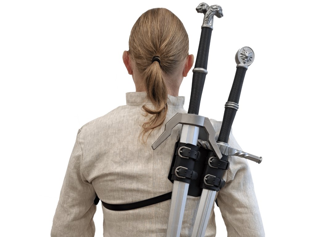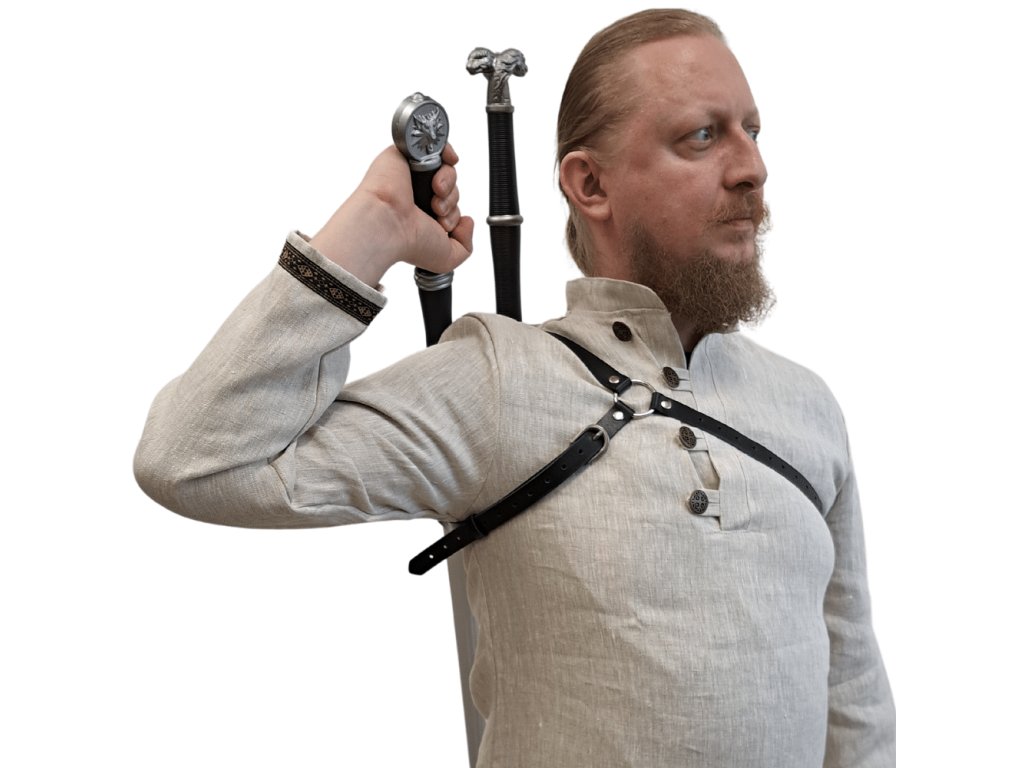 Stříbrný na monstra, ocelový na...lidská monstra! Zádový, kožený závěs na dva meče ve stylu Zaklínače ti umožní připravit se na jakoukoli výzvu! Vstup do světa fantasy s koženým závěsem na dva meče z naší dílny. Inspirovali jsme se nekompromisním stylem Zaklínače, abychom vytvořili produkt, který zdůrazňuje sílu, eleganci a odvahu. Každý závěs je ručně vyroben z prvotřídní hovězí kůže, což zajišťuje odolnost a dlouhou životnost. Jeho design umožňuje upravit velikost podle šířky hrudi bojovníka, takže umožňuje pohodlné nošení. Náš závěs na dva meče není jen praktickým doplňkem pro nošení tvých zbraní - je to také vyjádření tvého jedinečného stylu a vášně pro fantasy světy. Buď hrdinou své vlastní epické ságy! Staň se součástí významných bitev a proměň se v živoucí legendu! Součástí závěsu nejsou meče vyobrazené na fotografii. Měkčené meče zaklínače Geralta si můžeš objednat. K dispozici najdeš ocelový i stříbrný meč.