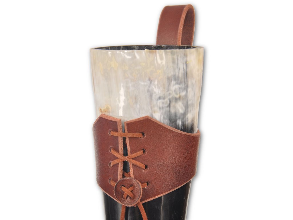 Kožený závěs na roh, vyrábíme jej v různých barvách, v případě zájmu lze závěs opatřit rytým vzorem v ceně dle složitosti motivu. Pokud si společně se závěsem objednáte roh, napište nám prosím do poznámky, abychom závěs upravili na míru (nejdéle do týdne). Pokud kupujete pouze závěs bez rohu, je dobré poslat nám obvod rohu (stačí připsat do poznámky k objednávce) v jeho horní třetině. Roh na obrázku není součástí balení.