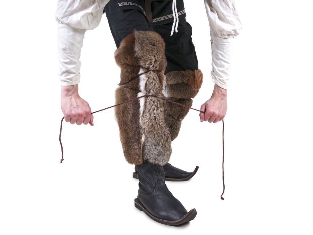 Stylové návleky z pravé králičí kožešiny oživí váš historický nebo fantasy kostým. Nechce se vám kupovat historickou obuv? Máte svoje oblíbené pohodlné botky, které byste chtěli proměnit do fantastické podoby? Kožešinové návleky jsou ideálním řešením. Navíc vás příjemně zahřejí během chladnějších období. Rozměry návleků jsou cca 35 x 45 cm a jsou dodávány včetně šňůrek na ovázání kolem nohou. Uvedená cena ja za pár. Nestačí vám jenom kožešinové návleky? Podívejte se na celou nabídku historické obuvi. Hledáte jiné vylepšení kostýmu? Co takhle pěkná taštice nebo váček?