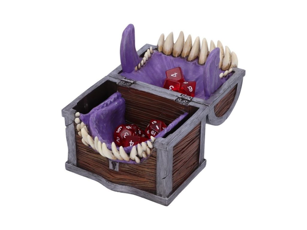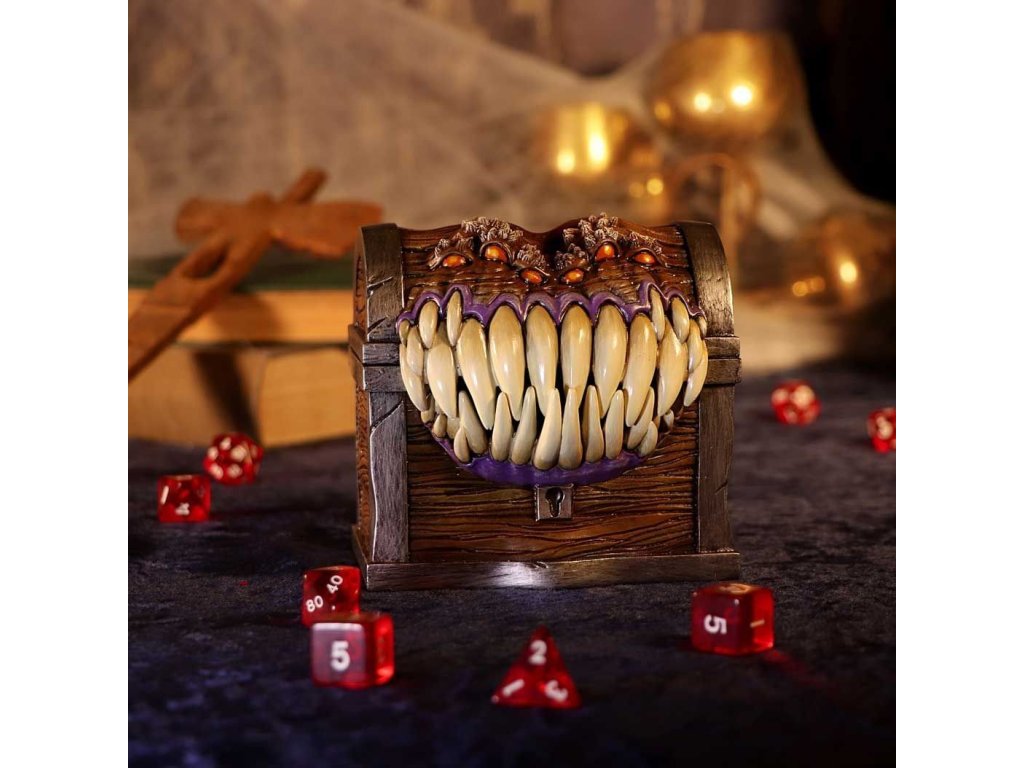 Originální krabička na kostky a jedinečná dekorace pro vaše hry na hrdiny má podobu truhlice pokladů z Dungeons & Dragons, která je ve skutečnosti dovedně maskovanou stvůrou Mimic!