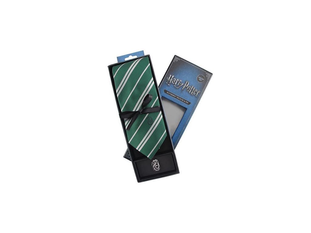 Elegantní kravata v barvách Zmijozelu - koleje na škole čar a kouzel v Bradavicích. Je opatřena monogramem a odznakem této koleje. Skvělý doplněk obleku pro fanoušky příběhů o Harry Potterovi.