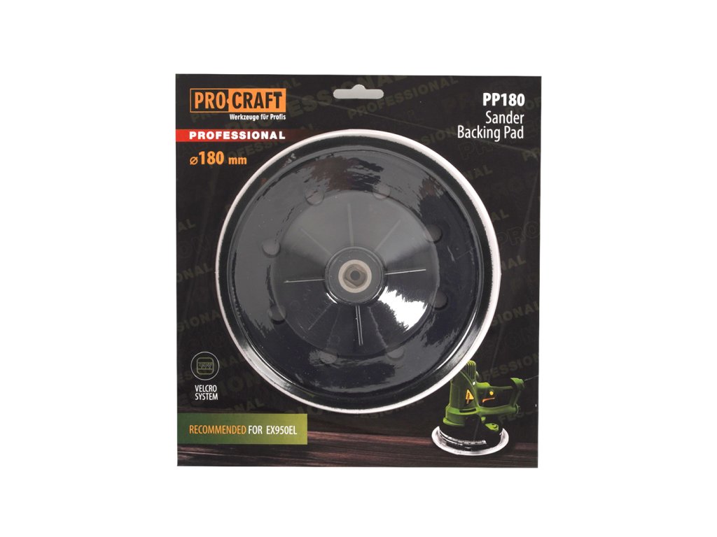 Kulatý unášecí talír Procraft PP180 pro brusky na sádrokarton. Průměr 180 mm, vybaven suchým zipem a otvory pro efektivní odsávání prachu. Kompatibilní s nářadím EX950EL.