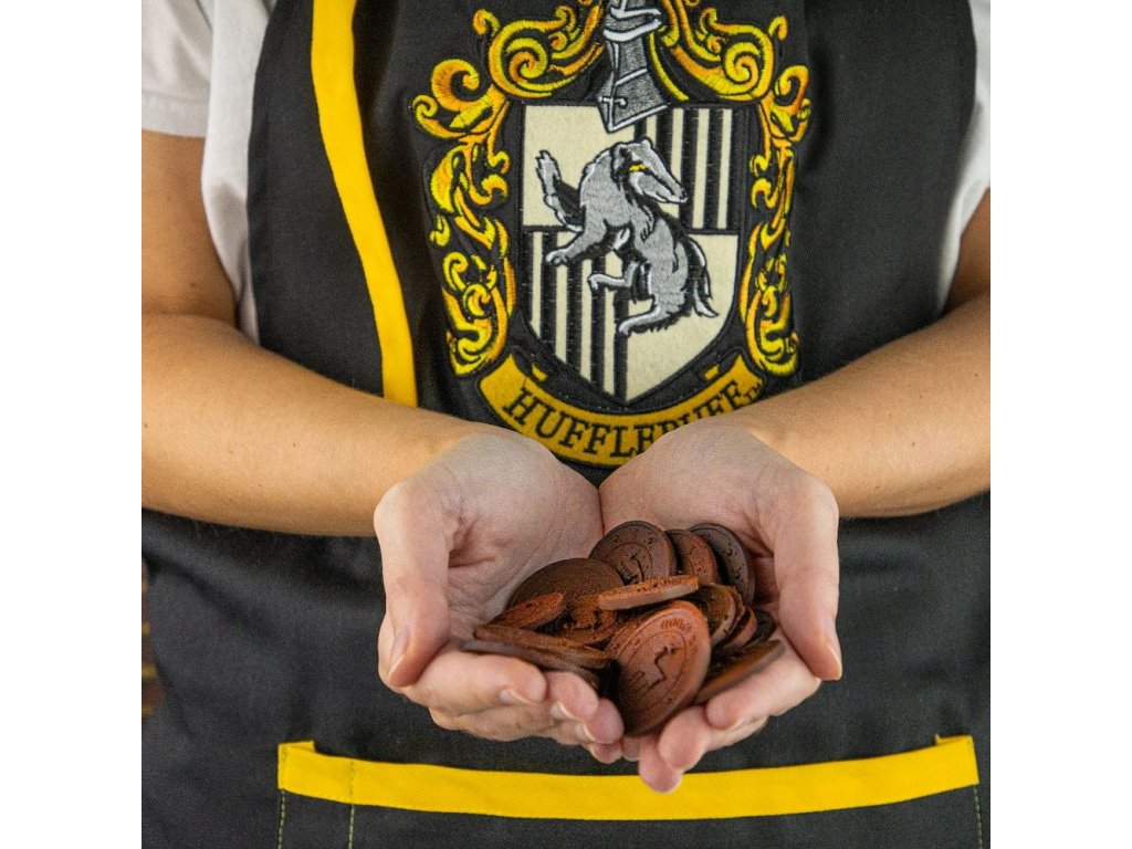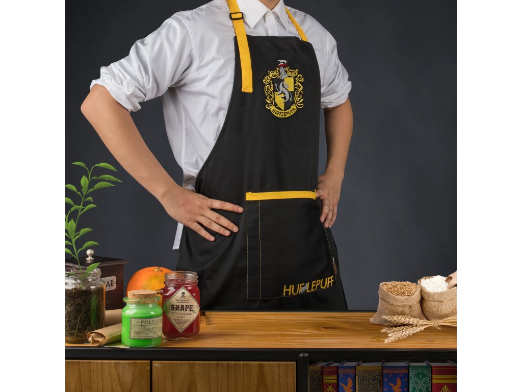 S touto hezkou kuchyňskou zástěrou se znakem koleje Mrzimor z bradavické školy čar a kouzel hravě zvládnete všechny nástrahy vaření, ať už magické či nemagické! Zástěra je vybavena velkou kapsou, do které můžete ukrýt kuchyňské pomůcky i dobroty na ujídání. Skvělý společník do kuchyně pro každého fanouška Harry Pottera.