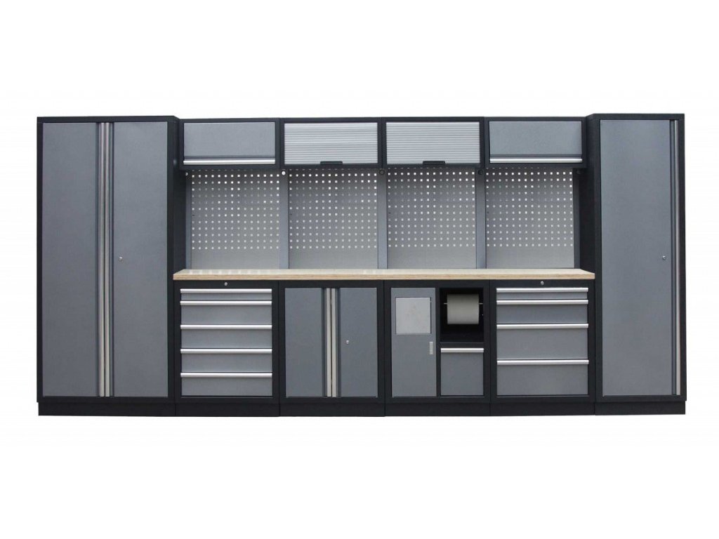 Sestava nábytku v sobě skrývá dostatečné množství úložného prostoru pro vaše nářadí, autotechniku i dílenské vybavení. V kombinaci s bytelnou pracovní deskou získáte multifunkční stěnu, se kterou vám půjde práce od ruky ve všech směrech.
