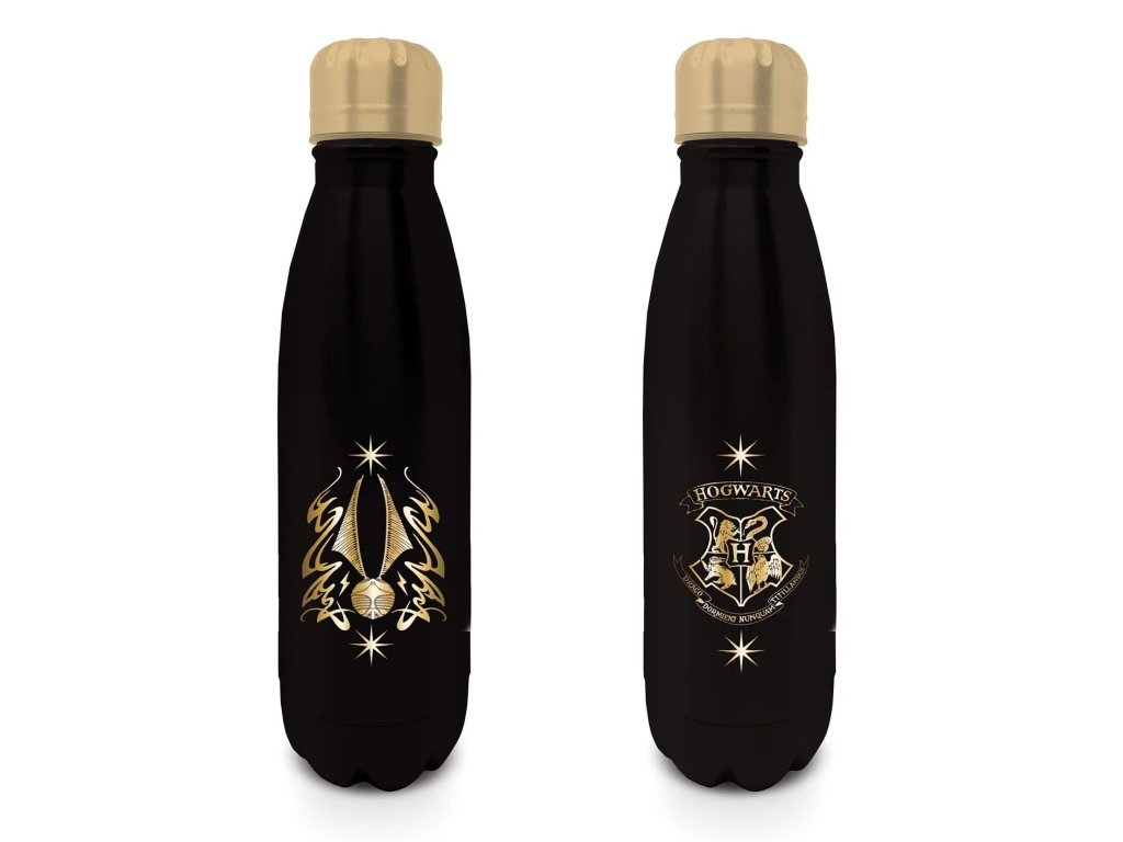Praktická kovová láhev na vodu pro žíznivé čarodějky a mágy z Bradavic se hodí k občerstvení nejen během famfrpálového klání. Hezká láhev se Zlatonkou pro fanoušky Harryho Pottera. Nevhodné do myčky nádobí a mikrovlnné trouby.