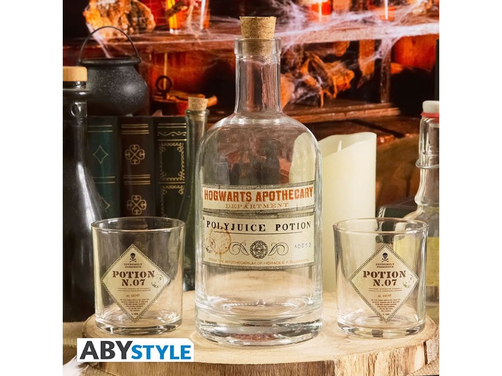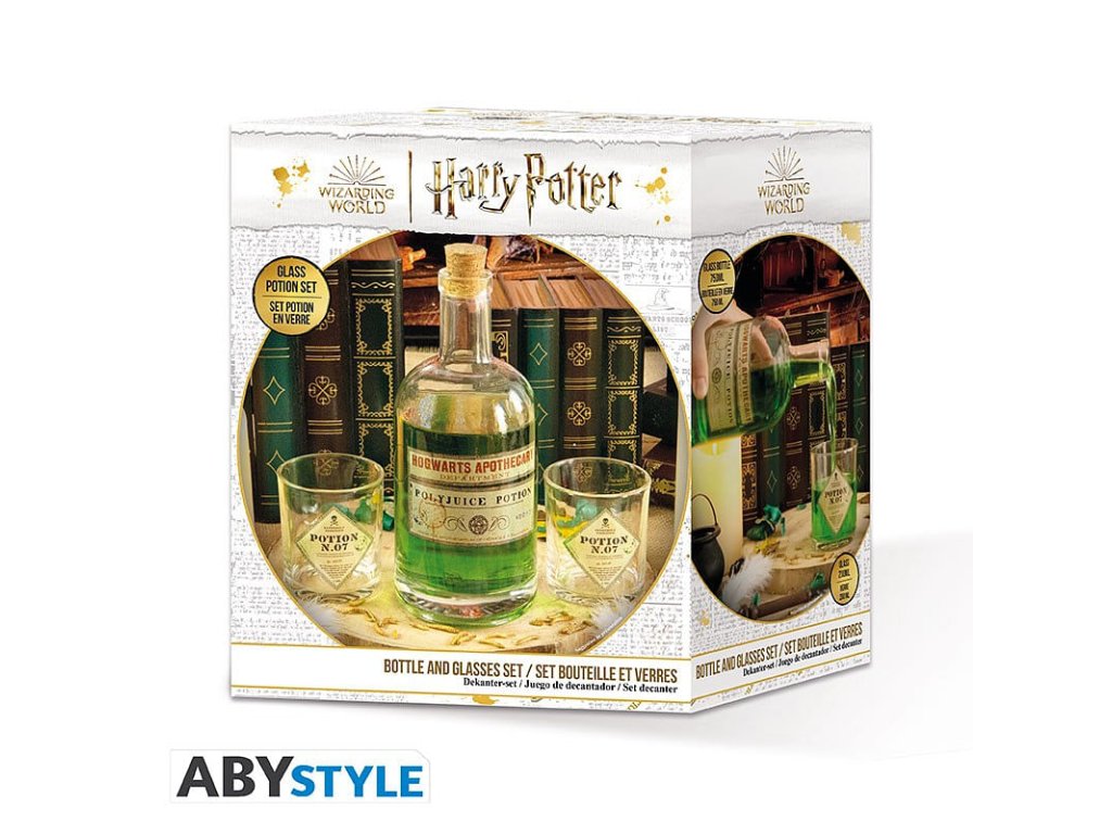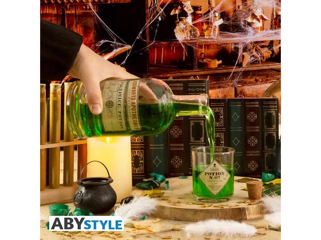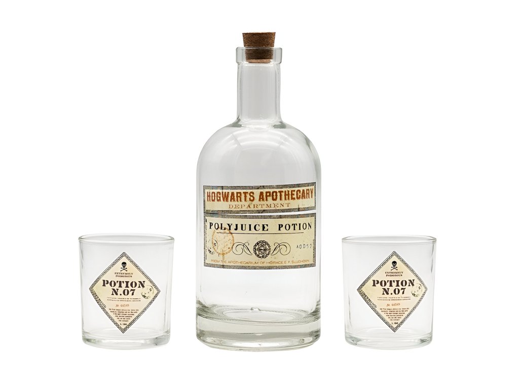 Pro umění přípravy lektvarů nemusíš vytahovat svou hůlku, ale určitě se ti bude hodit láhev na lektvar a skleničky! Mnoholičný lektvar nebo jen dobrá limonáda? Připrav a vychutnej si svůj oblíbený nápoj s přáteli díky této nádherné lahvi a dvěma skleničkám s motivem ze světa čar a kouzel Harryho Pottera. Set bude skvělým společníkem k tématickému filmovému večeru nebo krásný dárek pro Potterheady. Ale pozor, pokud se při přípravě lektvaru spleteš, může ti pěkně zavařit. Možná bude přece jen lepší zvolit bezpečnou limonádu... Objem láhve: 750 ml Objem sklenice: 200 ml Nevhodné do myčky nádobí a mikrovlnky.