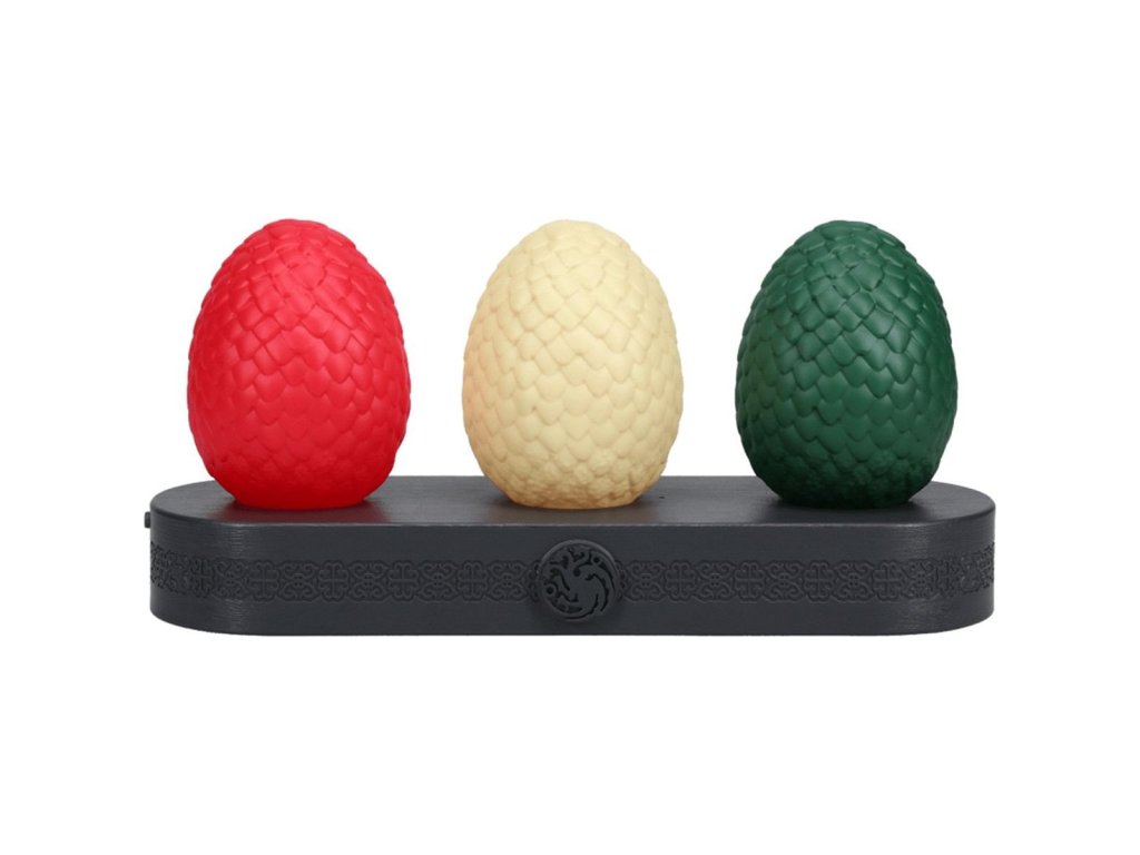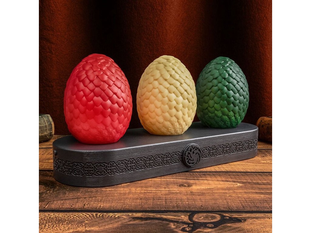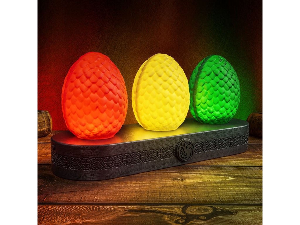 Lampička v podobě dračích vajec udělá radost fanouškům fantasy seriálu House Of The Dragon. Lampička umožňuje 3 světelné režimy - standartní, fázovací a reagující na hudbu. Napájeno pomocí 1,5 m dlouhého kabelu USB (je součástí balení) nebo 3 ks baterie AAA (nejsou součástí balení).