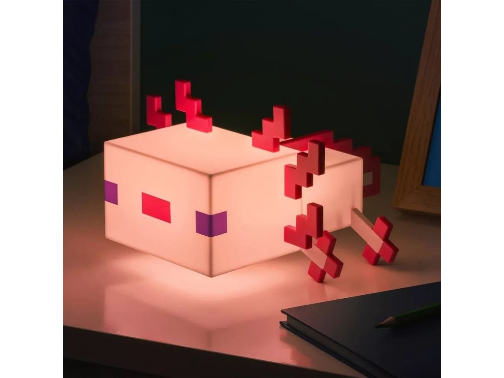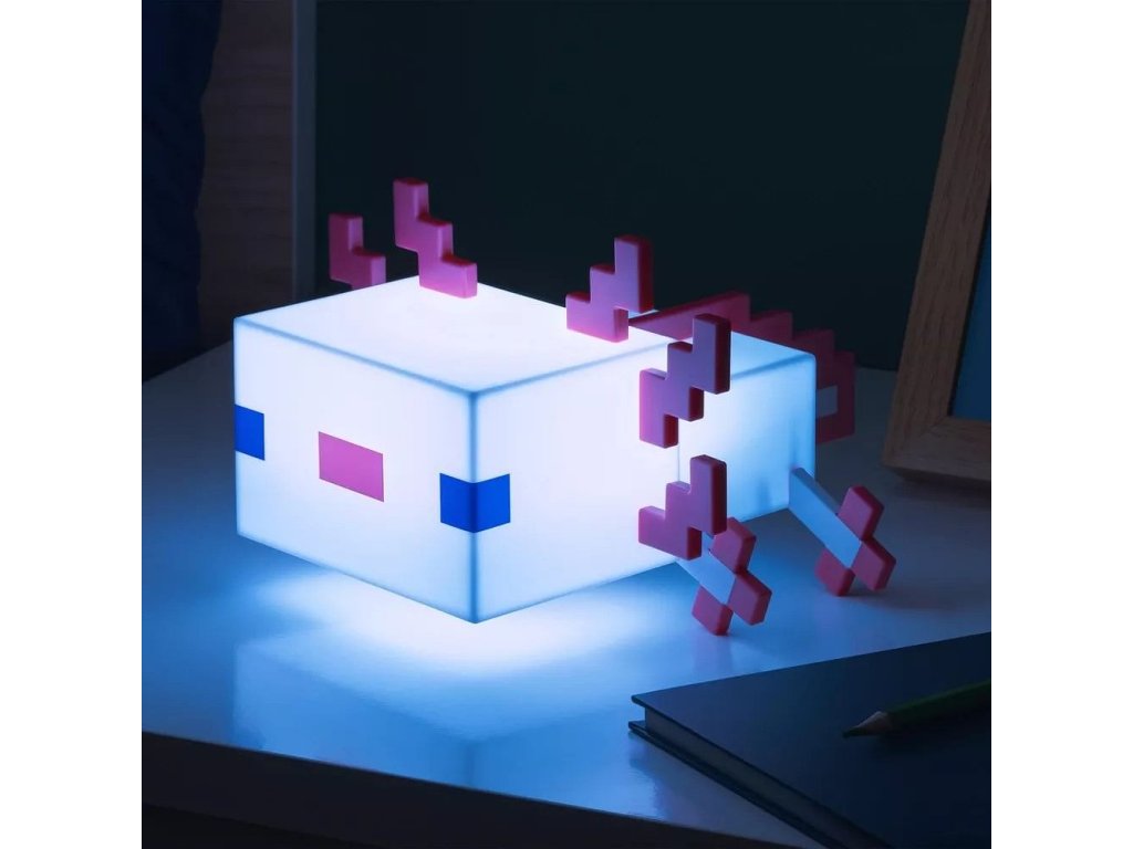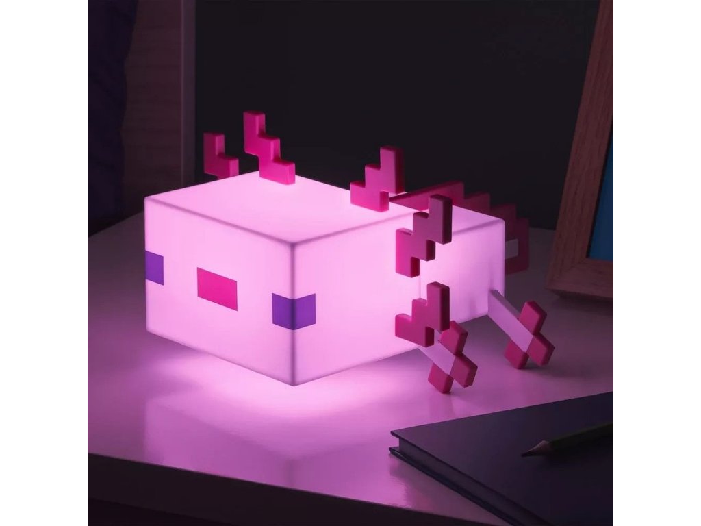 Originální lampička v kostičkové podobě nejroztomilejšího zvířete planety - Axolotla z oblíbené videohry Minecraft bude skvělým dárkem pro hráče a stylovým doplňkem vaší domácnosti. Lampička má 2 světelné režimy - střídá 5 barev nebo si můžete zvolit jen jednu z nich. Napájení: 3x baterie AA (nejsou součástí balení).