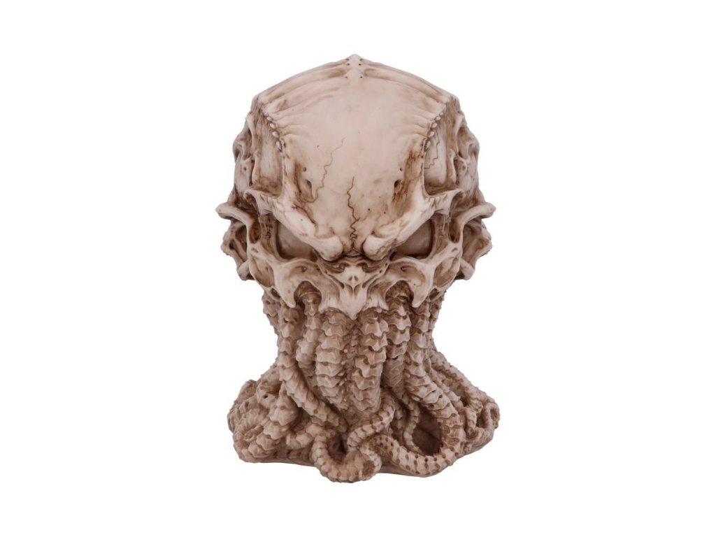 Ne každý se může pochlubit trofejí a relikvií v podbě lebky prastarého božstva! Milovníci hororů H. P. Lovecrafta Call of Cthulhu i fanoušci gotiky jistě ocení jedinečný doplněk domácnosti v podobě detailní lebky, jejímž autorem je známý fantasy a hororový tvůrce James Ryman Skvělá rekvizita pro hry na hrdiny, LARP či divadlo!