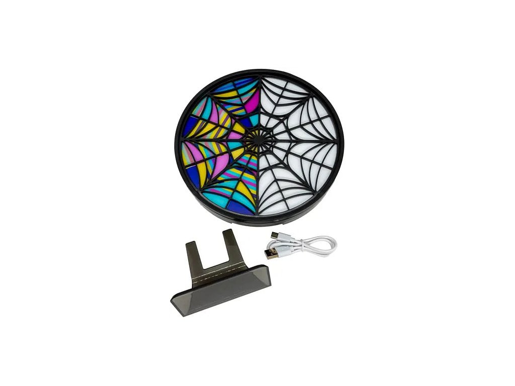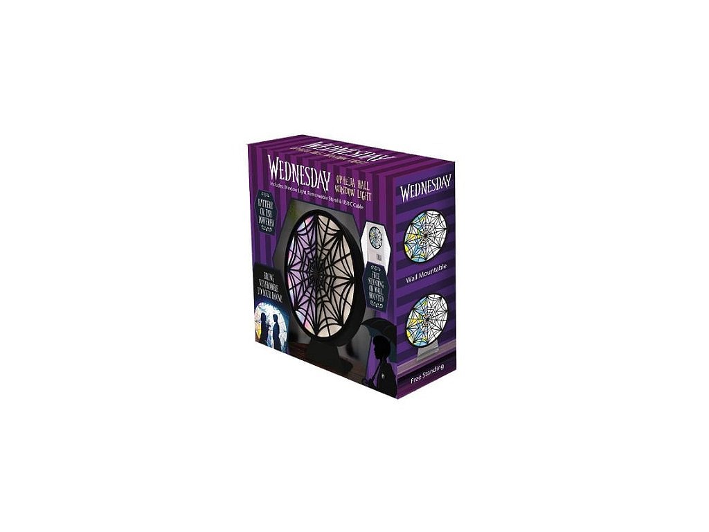 Dekorační LED lampa s designem pavučinové okenní vytráže ze seriálu Wednesday, dodá tvému pokoji tu správnou temnou atmosféru! Ideální pro chvíle oddechu, poslech hudby, nebo noční rituál... Lampa má průměr 20 cm, na zadní straně má otvor k zavěšení na stěnu, ale součástí balení je i stojánek a lze tak dekorací zkrášlit i pracovní stůl. Možnosti napájení jsou tak také dvě - buď 3 x AAA baterie nebo USB kabel, který održíte v balení. Po usazení na stojan je výška světla cca 27 cm.
