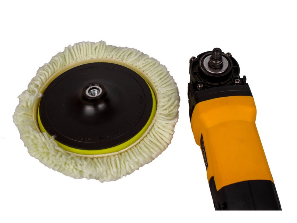Aretace upínacího vřetena umožňuje rychlou a snadnou výměnu leštícího talíře. Výměnu leštícího kotouče provedete snadno připnutím na suchý zip.