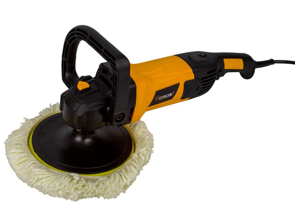 Leštička karoserie značky Hoteche s příkonem 1300 W a leštícím talířem se závitem M14 o průměru 180 mm.