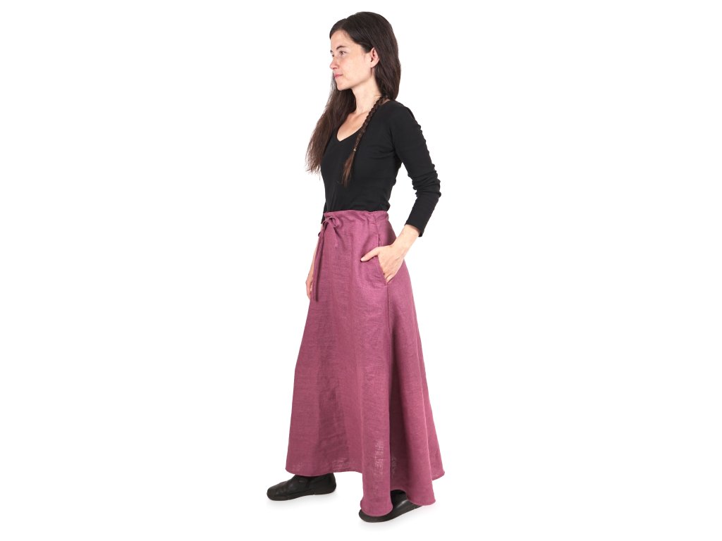 Lněná dlouhá sukně volného střihu okouzlí každou ženu a dívku svým kvalitním zpracování, lehkostí, prodyšností a krásnou barvou. Naše švadlenky moc dobře ví, co nám ženám sluší. Lněná sukně je v pase stažena pomocí lněného tkalounu, takže se krásně přizpůsobí každé ženské postavě. Vyberte si k sukni jinou barevnou variantu lněného opasku, který podtrhne vaše křivky a sukni dodá ještě větší šmrnc. Volný střih sukně vám poskytne pohodlí a dodá pocit naprosté volnosti po celý den. Dvě prostorné postranní kapsy samozřejmě nesmí chybět. Lněnou sukni nabízíme ve třech barvách: fialovou, zelenou a přírodní. Prohlédněte si naši další nabídku lněného oblečení. Lněná móda je velice oblíbená a její historie sahá až do středověku. Přečtěte si více informací o 100% lnu, který odolává nástrahám běžného nošení s grácií a takřka nestárne. Jakmile jednou vyzkoušíte len na vlastní kůži, budete toužit po dalších kouscích.