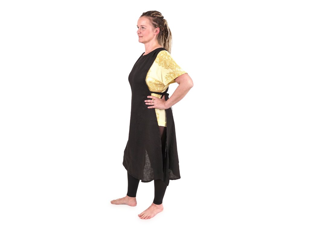 Lněná dámská zástěra byla známá též jako surcotte a patřila mezi základní typ středověkého svrchního oděvu. Ale pozor! I ve 21. století s ní uděláte parádu. Hodí se nejen ke kalhotám, k sukni, ale také k šatům či k legínám. Vázání je vyřešeno pomocí tkanic, které jsou všité u pasu a nabízí hned několik způsobů vázání. Záleží jen na vaší fantazii. Lněná zástěra se řadí mezi svrchní vrstvu oděvu, využijete ji tak po celý rok. Volnost k tanci a k pohybu vám dodá její střih a pocit lehkosti vám dodá kvalitní 100% len, ze kterého je dámská zástěra ušita. Naše švadlenky moc dobře ví, po čem my ženy prahneme. Nepřijdou vám tkanice dostatečně široké pro zvýraznění vašich křivek? Mrkněte na naše lněné opasky, které vám rozhodně pomůžou. Nebo na koženou dámskou ledvinku, která vám nejen zvýrazní pas, ale navíc je to i praktický doplněk, do kterého můžete uschovat veškeré drobné nezbytnosti jako je peněženka, mobilní telefon nebo pár oříšků pro veverku. Podle výběru kombinace barev lněného opasku či ledvinky s lněnou zástěrou vytvoříte jedinečný outfit. Lněnou dámskou zástěru nabízíme ve čtyřech barvách: černou, fialovou, zelenou a přírodní. Přírodní lněná zástěra je skvělý doplněk pro nadšence LARPU. NÁŠ TIP K lněnému oblečení skvěle padnout jedinečné doplňky ze 100% hovězí kůže. Vybrat si můžete třeba krásnou tašku či kabelku, již zmiňovanou koženou dámskou ledvinku, koženou peněženku, kožený opasek nebo nějakou ozdobu na ruce v podobě jedinečných kožených náramků z naší dílny. Pokud vám nic nepadne do oka, ale ve vaší hlavně máte jasnou představu, co byste si přáli ze 100% hovězí kůže, nesmutněte. Napište nám vaši představu a my se pokusíme vaše sny a přání zhmotnit. Vyrábíme a šijeme i na míru. Stačí nám napsat email na: info@imago.cz a my se s vámi spojíme.