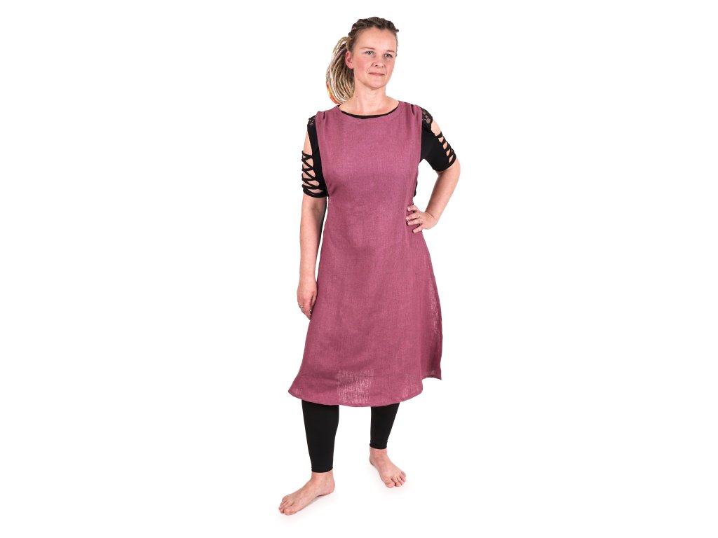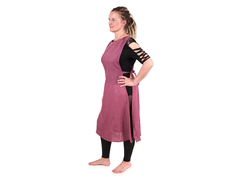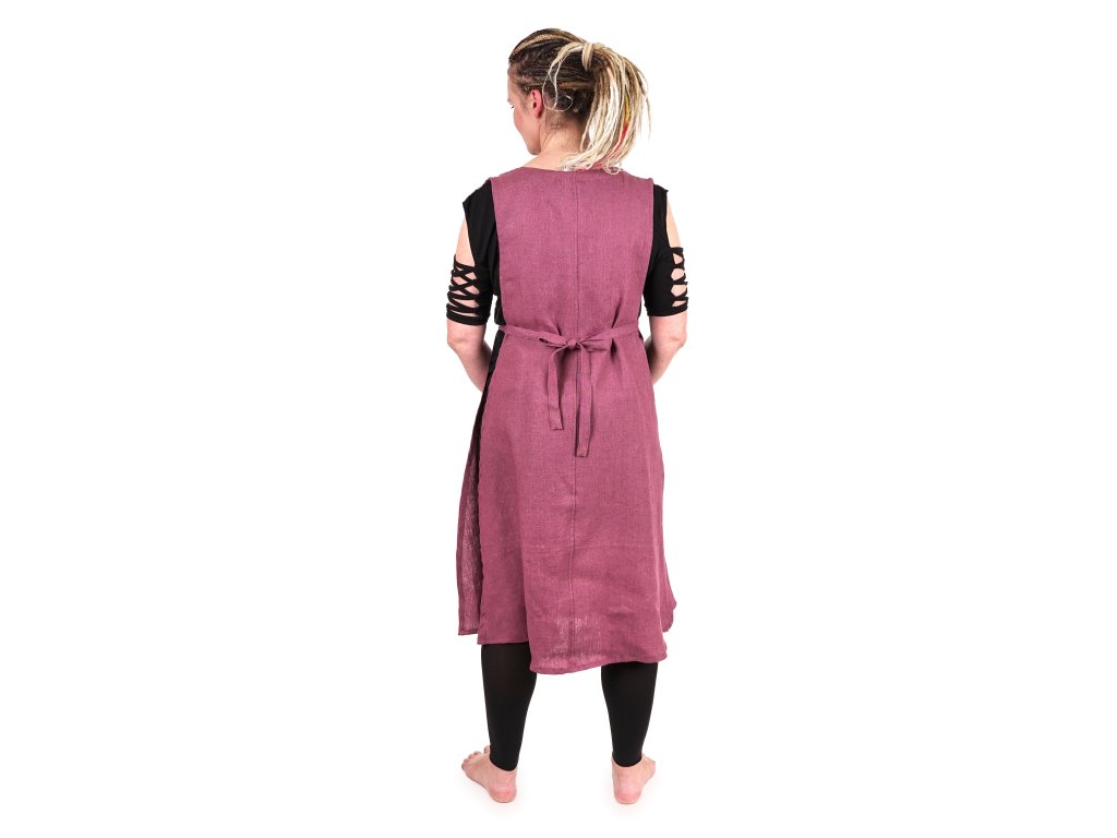 Lněná dámská zástěra patřila mezi základní typ středověkého svrchního oděvu a byla známá jako surcotte. Parádu s ní ale uděláte i dnes ve 21. století. Hodí se nejen k sukni, k šatům, ale také ke kalhotám a k dnes velice oblíbeným legínám. Zástěra se zavazuje pomocí tkanic u pasu, které nabízí vícero způsobů vázání. Záleží jen na vaší fantazii a momentální náladě. Jelikož se jedná o svrchní vrstvu oděvu, lněnou zástěru Lobelii využijete nejen v létě, ale po celý rok. Střih zástěry vám dodá volnost a kvalitní 100% len vám dodá pocit lehkosti. Naše švadlenky moc dobře ví, co nám ženám sluší a po čem toužíme. Pokud se vám tkanice zdají málo široké pro zvýraznění vašich křivek, mrkněte na naše lněné opasky, které vám rozhodně pomůžou. Nebo ještě na koženou dámskou ledvinku, která vám nejen zvýrazní pas, ale navíc je to i praktický doplněk, do kterého můžete uschovat veškeré drobné nezbytnosti. Kombinací barev lněného opasku či ledvinky se lněnou zástěrou můžete vytvořit jedinečný outfit. Lněnou dámskou zástěru si můžete vybrat ze čtyř barev: fialovou, zelenou, černou a přírodní. Přírodní lněná zástěra je skvělý doplněk pro LARPové nadšence. NÁŠ TIP Ke lněnému oblečení skvěle padnou jedinečné doplňky ze 100% hovězí kůže. Vybrat si můžete třeba krásnou tašku či kabelku, již zmiňovanou koženou dámskou ledvinku, koženou peněženku nebo nějakou ozdobu na ruce v podobě jedinečných kožených náramků z naší dílny. Pokud vám nic nepadne do oka, ale ve vaší hlavě máte jasnou představu, co byste si přály ze 100% hovězí kůže, nesmutněte. Napište nám vaši představu a my se pokusíme vaše sny a přání zhmotnit. Vyrábíme a šijeme i na míru. Stačí nám napsat email na: info@imago.cz a my se s vámi spojíme.