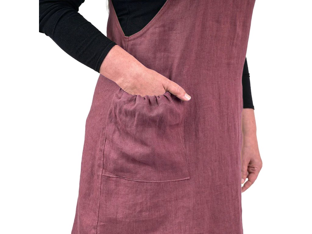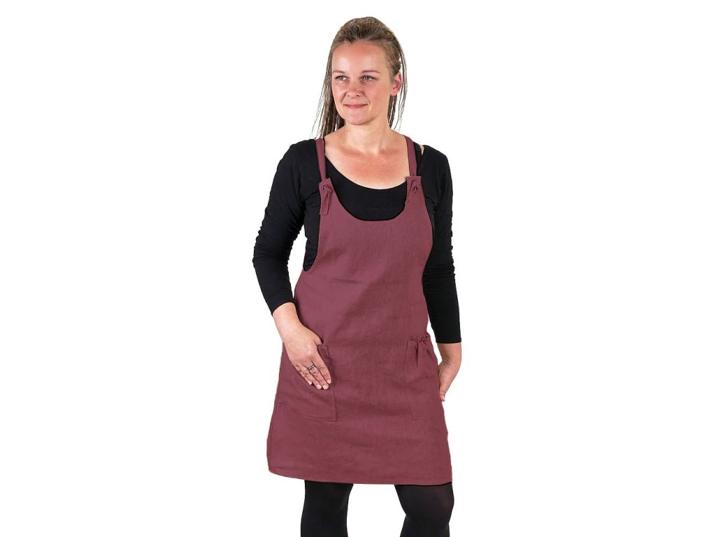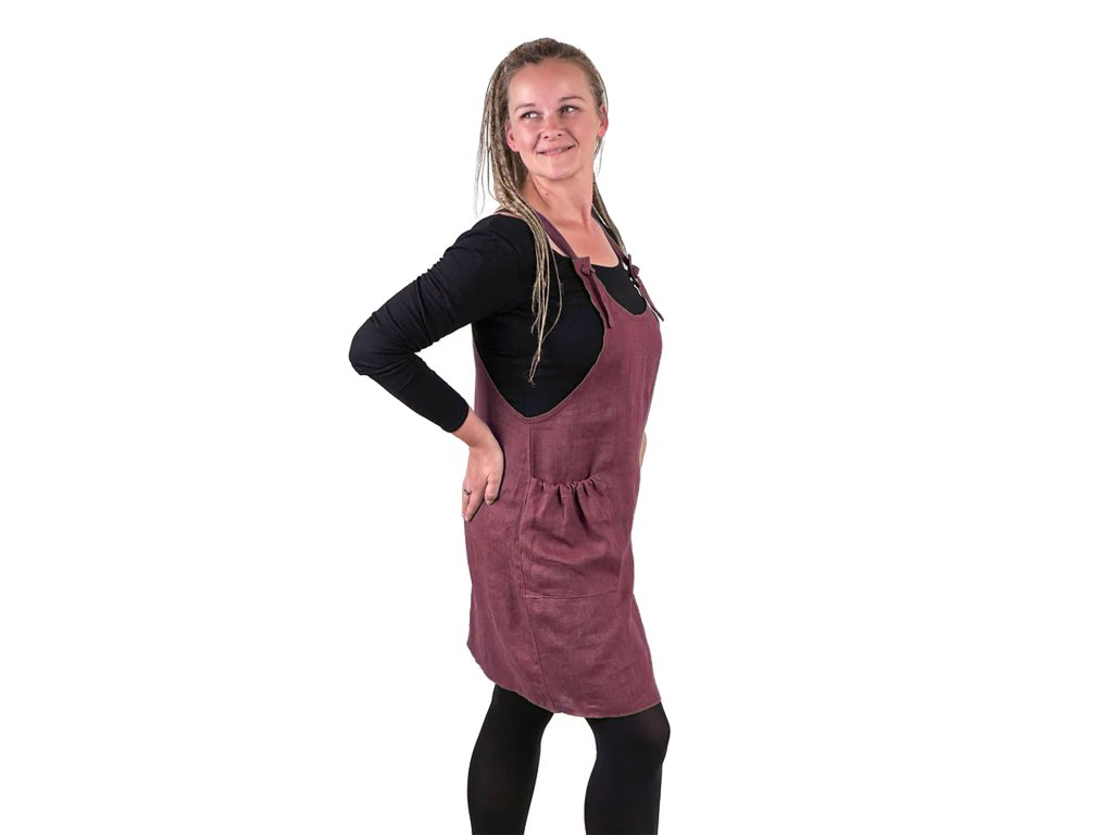 Lněné šaty s laclem jsou ušity ze 100% lnu, který vyniká nejen svou odolností a pevností, ale také prodyšností, kterou oceníte především v letních měsících. Lněné šaty se skvěle přizpůsobí každé ženské postavě díky volnému střihu a nastavitelných ramínek, které jednoduše rozvážete a upravíte dle potřeb. Šatům nechybí ani dvě přední prostorné kapsy, které pojmou nejen vaše ruce, ale také nějaké drobnosti. Jemná vínově fialová barva zpestří váš šatník a nádherně vynikne třeba v kombinaci s bílým tričkem či tílkem. Šaty využijete nejen v létě, ale celoročně v kombinaci s kalhotami či s legínami. Lněné šaty s laclem šijeme ve čtyřech barvách: fialová, zelená, přírodní a pískově žlutá. Oblečení ze 100% lnu je velice oblíbené díky vlastnostem této látky. Mrkněte na více informací o 100% lnu, který takřka nestárne a odolává nástrahám běžného nošení s grácií. Pokud preferujete raději kalhoty než šaty, mrkněte na dámské lněné kalhoty s laclem, které nabízíme také ve čtyřech barevných odstínech.