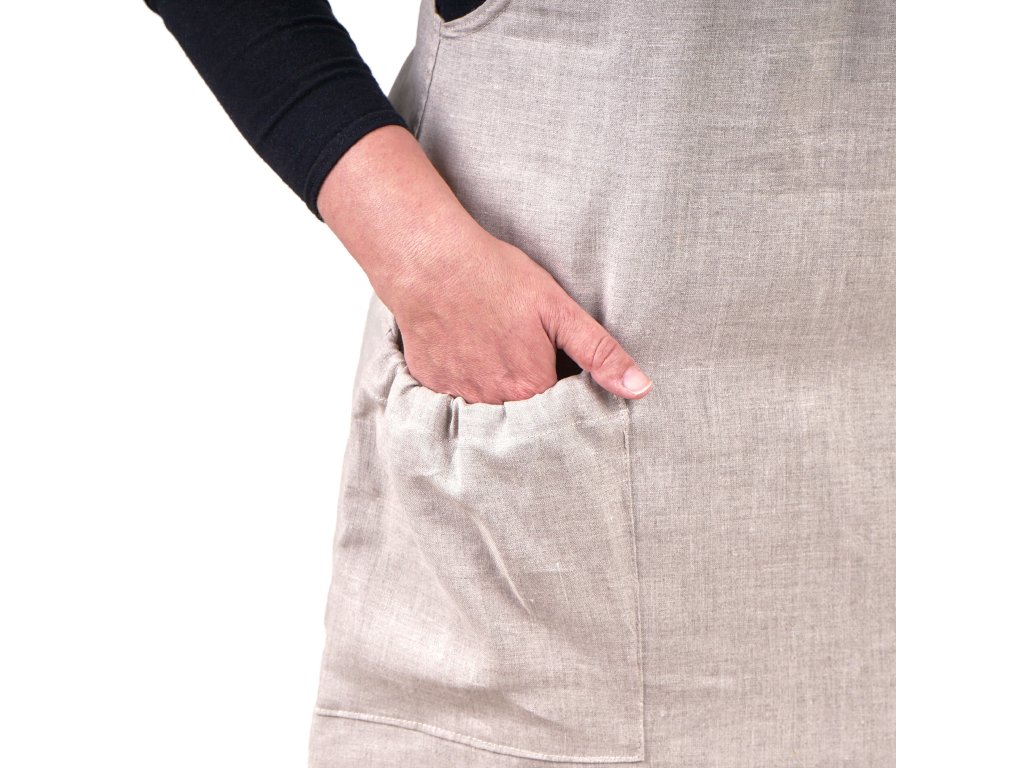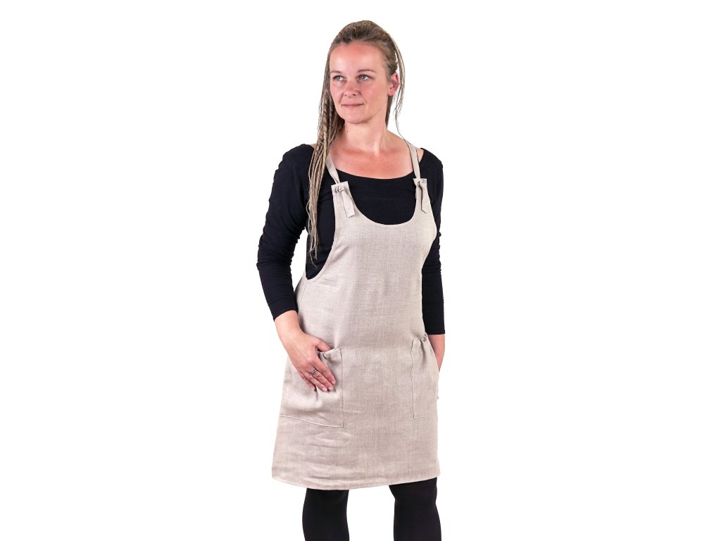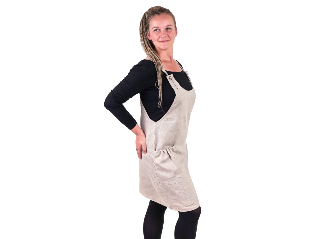 Lněné šaty s laclem ze 100% lnu si ihned zamilujete. Nejen že se krásně přizpůsobí každé ženské postavě díky volnému střihu, ale zároveň vám poskytne neomezenou volnost v pohybu, k tanci nebo k lenošení na gauči. 100% len vyniká nejen svou odolností a pevností, ale také prodyšností. Pomocí jednoduchých nastavitelných ramínek šaty jednoduše oblečete a upravíte dle potřeb. Dvě přední prostorné kapsy rozhodně nesmí chybět. Lněně šaty zajisté oceníte v letních parních dnech. Využijete je však za každého ročního období v kombinaci s kalhotami či s legíny. Šaty šijeme ve čtyřech barevných odstínech: přírodní, pískově žlutá, vínově fialová a zelená. Lněná móda je velice oblíbená a její historie sahá až do středověku. Podívejte se na více informací o 100% lnu, který odolává nástrahám běžného nošení s grácií a takřka nestárne. Pokud preferujete raději kalhoty než šaty, mrkněte na dámské lněné kalhoty s laclem, které nabízíme také ve čtyřech barevných odstínech.