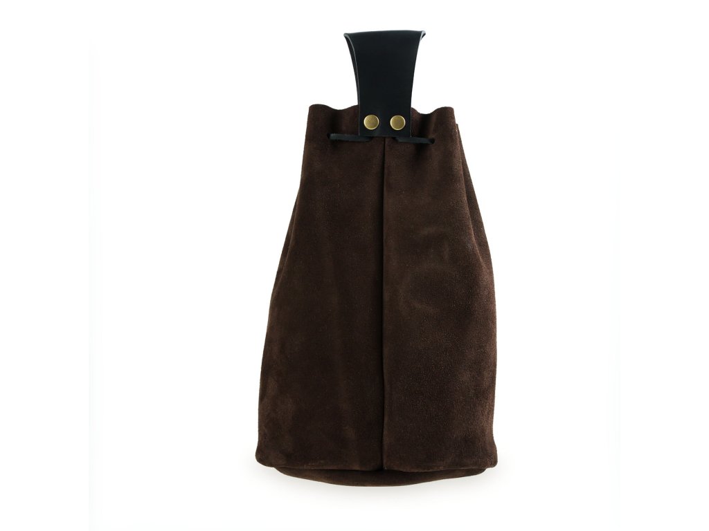 Krásný objemný ručně vyrobený měšec s poutkem na opasek se hodí jak na LARP tak i na procházky do lesa. Díky kulatému dnu měšec pěkně drží tvar, je prostorný a vejdou se do něj veškeré potřebné věci (peněženka, mobil i malá lahvinka na cestu). S poutkem měří 29 cm, dno je široké 16 cm. Pohodlně se vejde na opasek široký 4 cm. Měšec je vyrobený ze štípenky, poutko je z hlazené kůže a zavazovaní je řešeno koženou tkanicí. Měšec vyrábíme ve čtyřech barevných variantách: hnědý s černým poutkem červený s hnědým poutkem přírodní (světlý) s hnědým poutkem černý s hnědým poutkem