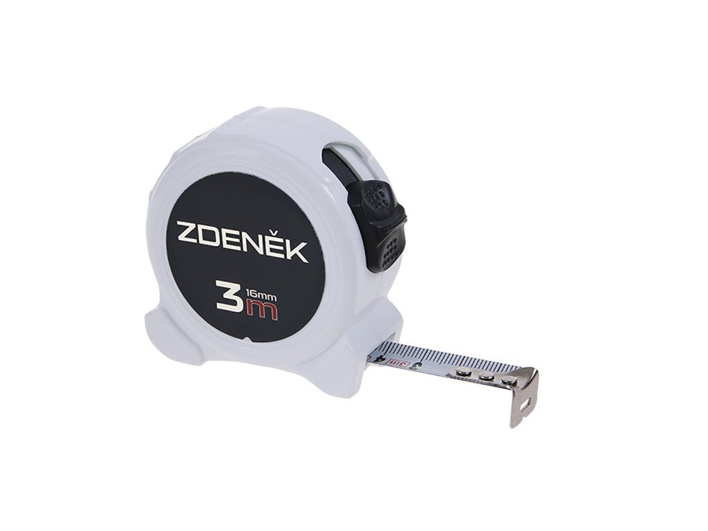 Svinovací metr se jménem, kalená páska, pouzdro metru vyrobeno z ABS plastu, široká dobře čitelná stupnice s velkými čísly, poutko, klip na opasek. CE certifikát - metr vhodný ke kalibraci.