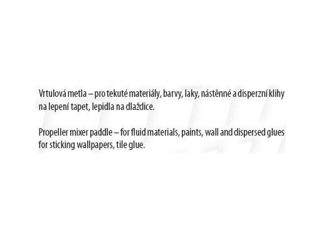 - použití : pro tekuté materiály, barvy, laky, nástěnné a disperzní klihy na lepení tapet, lepidla na dlaždice, tvar lopatek je uspůsobený tak, aby došlo k dokonslému míchání směsi bez nežádoucího znečištění