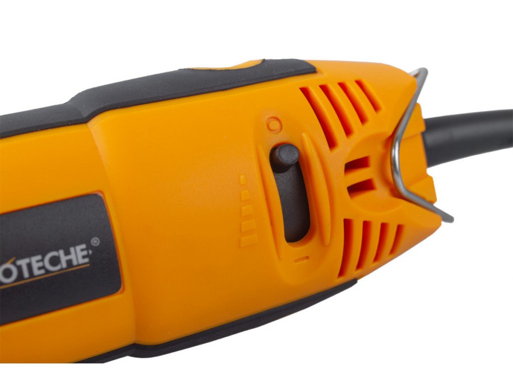 Hodí se na opracování jak měkkých tak tvrdých materiálů. Skvěle se drží a snadno i rychle v ní vyměníte pracovní nástavce.