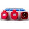 Vstup vidlice 32A 5P. Výstup 8x zásuvka 16A, 1x zásuvka 16A 5P, 1x zásuvka 32A 5P. Ochrana IP44.