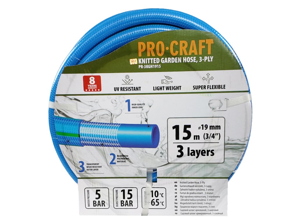 Modrá zahradní hadice Procraft PR-3KGH1915 3 vrstvy, 3/4" 15 m | PR-3KGH1915