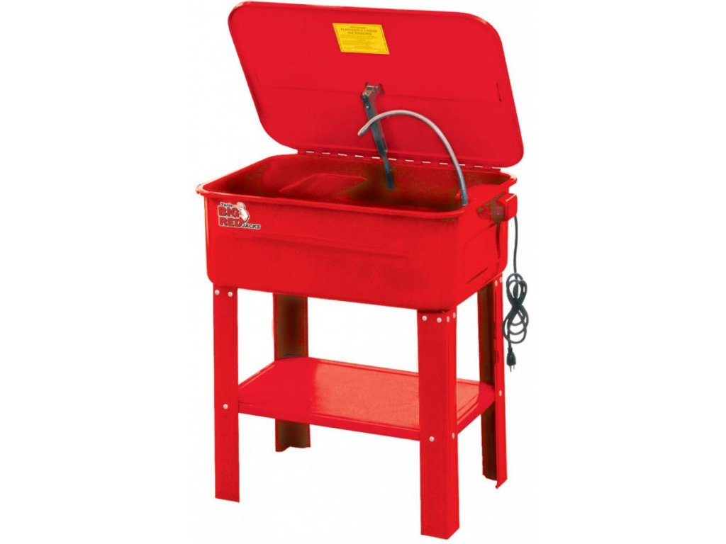 Profesionální ocelový mycí stůl o objemu vany 75 l, součástí je čerpadlo a tryska na ohebném krčku, průtok čerpadla, 190 l/hod.