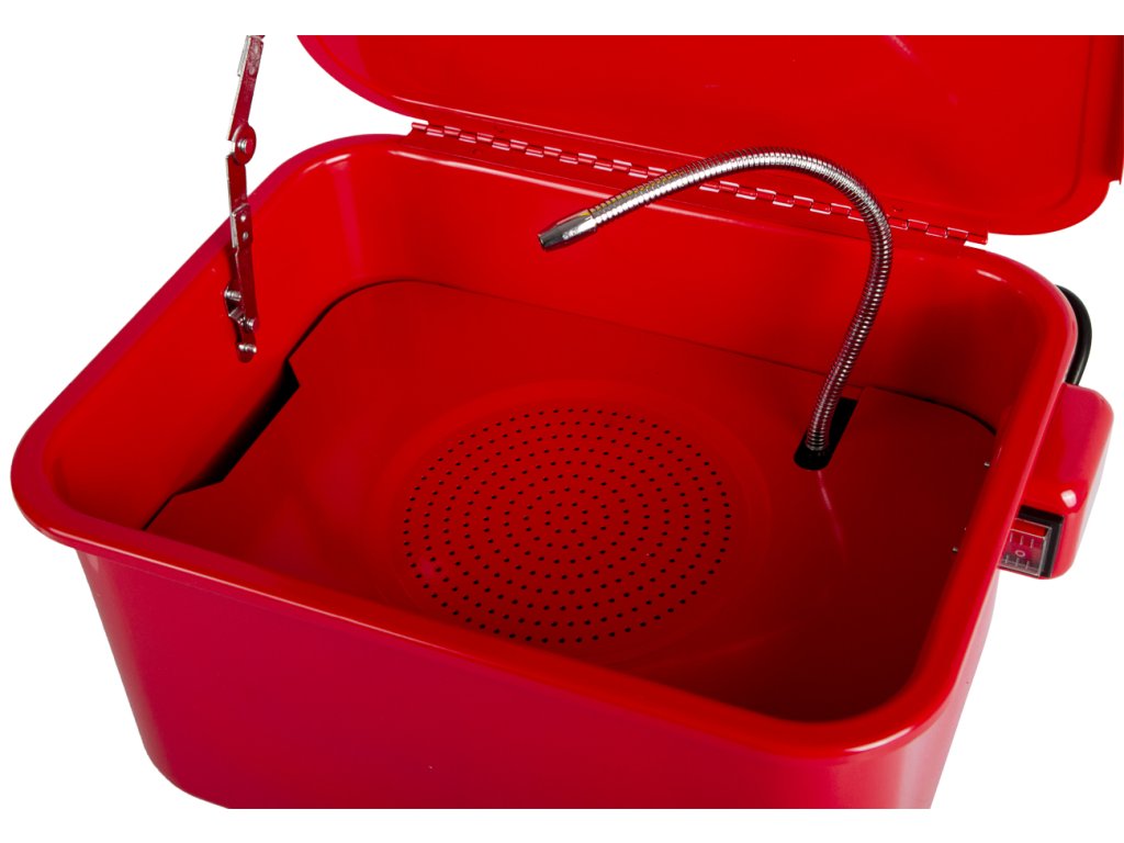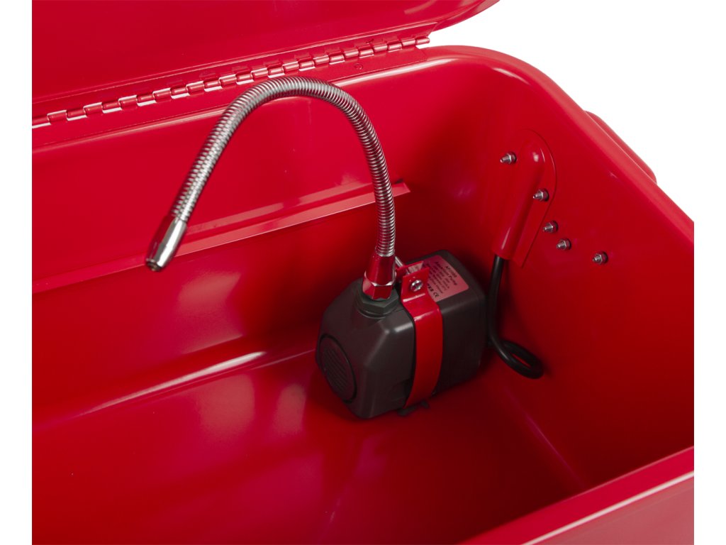 Profesionální přenosná mycí vana s objemem 22 l, elektrickým čerpadlem a tryskou na ohebném krčku, objem mycího roztoku 13 l.