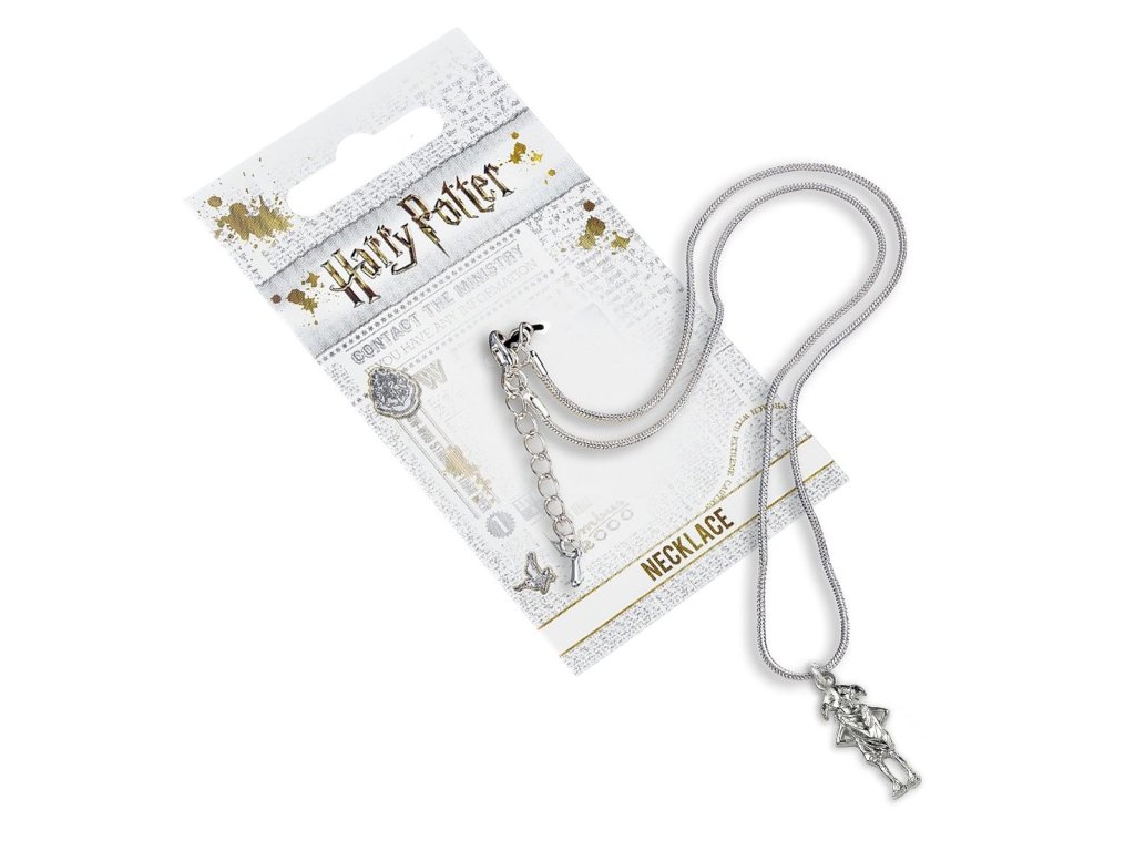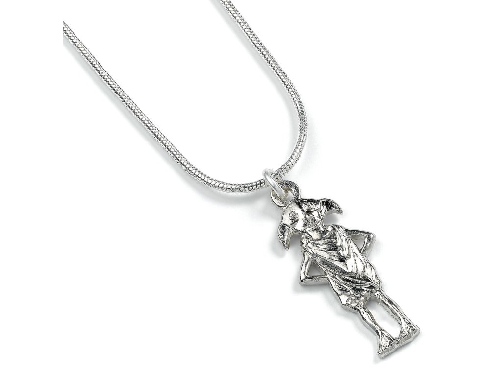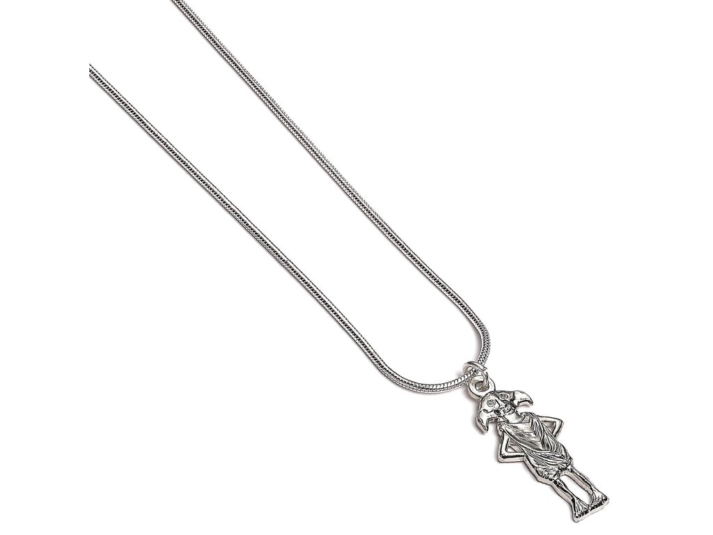 Pěkný náhrdelník s přívěskem domácího skřítka Dobbyho, věrného kamaráda Harry Pottera, udělá radost malým i velkým mágům z Bradavic! Náhrdelník je tvořen postříbřeným hadím řetízkem o délce 45 cm.