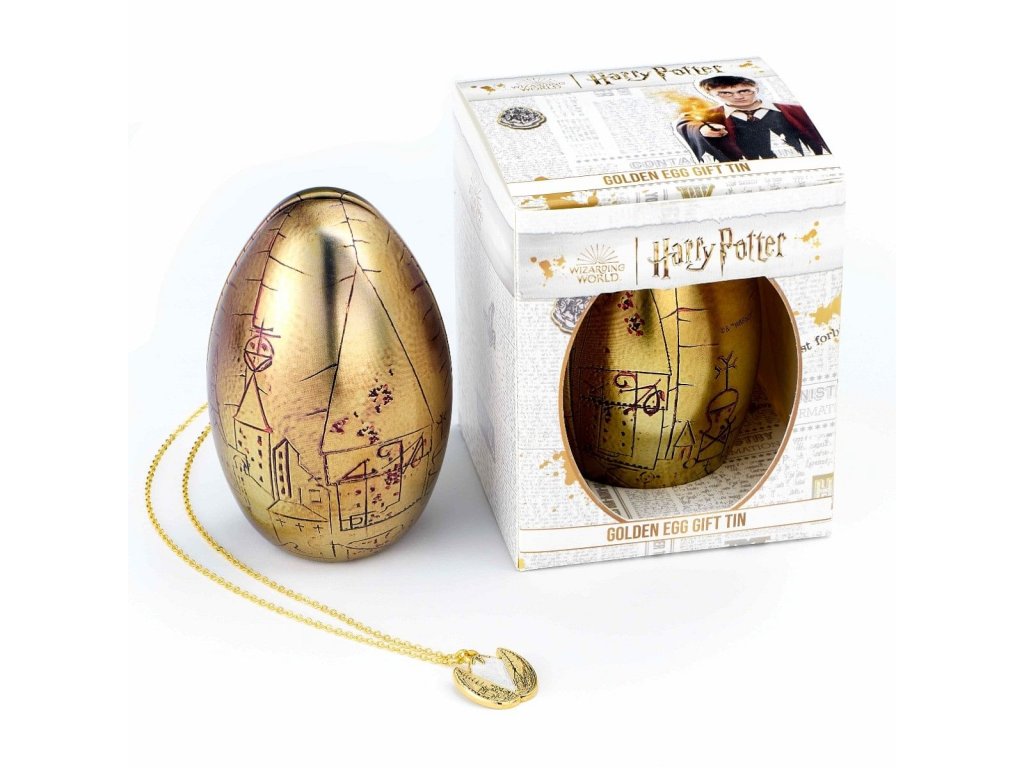 Náhrdelník v podobě zlatého vejce z Harryho Pottera, trofeje za splnění prvního úkolu v turnaji Tří kouzelníků. Součástí sady je řetízek dlouhý 40 cm (s možností nastavení), vše dostaneš v krásné plechové dárkové krabičce - rovněž ve tvaru zlatého vejce.