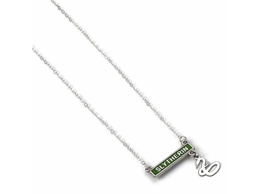 Krásný kovový náhrdelník s hadím symbolem Zmijozelu a názvem koleje bude skvělým dárkem pro malé i velké mágy z Bradavic a milovníky světa Harry Pottera! Řetízek je dlouhý 40 cm, s možností nastavit o dalších 5 cm.