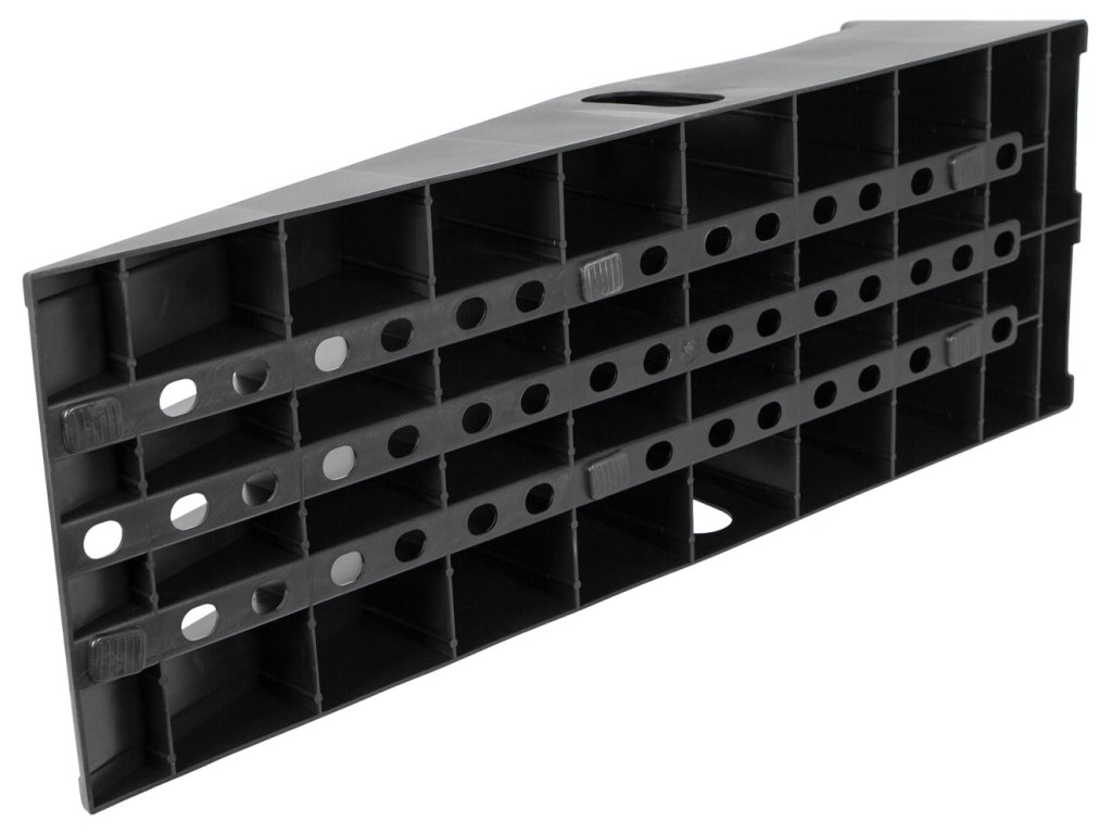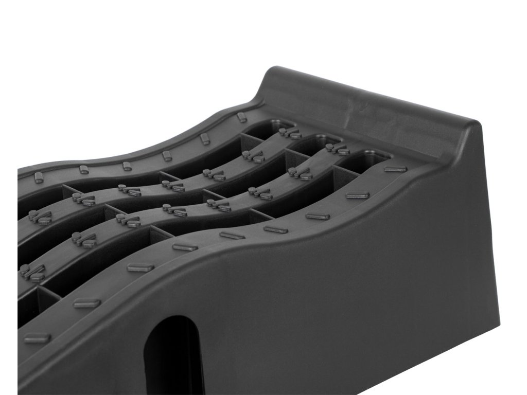 Set obsahuje 2 kusy vyrobené z vysokopevnostního polypropylenu, který je dostatečně odolný, aby unesl automobily s hmotností až 2 950 kg. Oproti tomu lehká konstrukce umožňuje snadné přenášení a skladování.