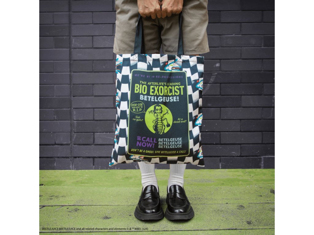 Vydáváš se na dalekou cestu? Vše, co potřebuješ teď můžeš sbalit do barevně rozdováděné plátěné tašky Beetlejuice! Díky velikosti cca 42 x 38 cm do ní poholdně schováš knihu, nákup nebo třeba školní potřeby.