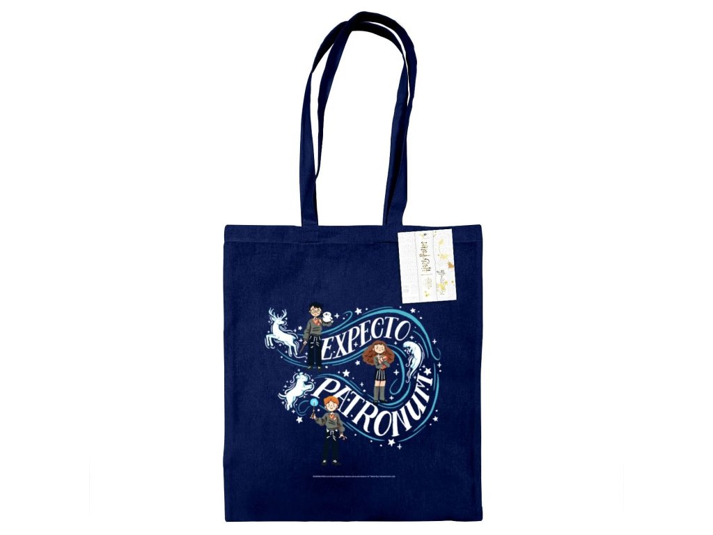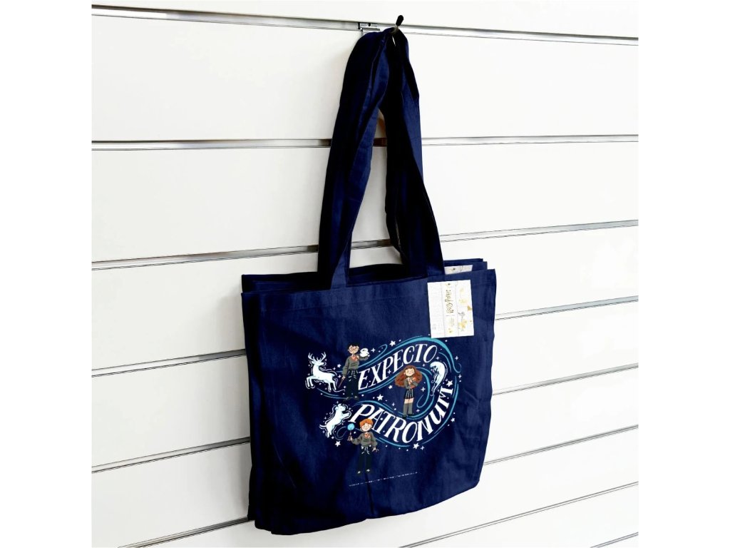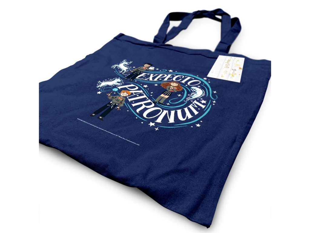 Se šikovnou taškou přes rameno pro milovníky školy čar a kouzel v Bradavicích z Harry Pottera, můžeš vyrazit na nákupy i na výlet. Na tašce barvy námořnické modři najdeš kreslené postavy Harryho s Hedvikou, Rona a Hermiony, jak vyvolávají své ochránce pomocí kouzla Expecto Patronum. Skvělá kvalitní taška na každodenní nošení, na cesty nebo festivaly a cony!