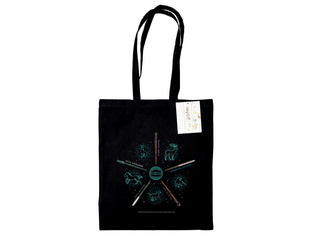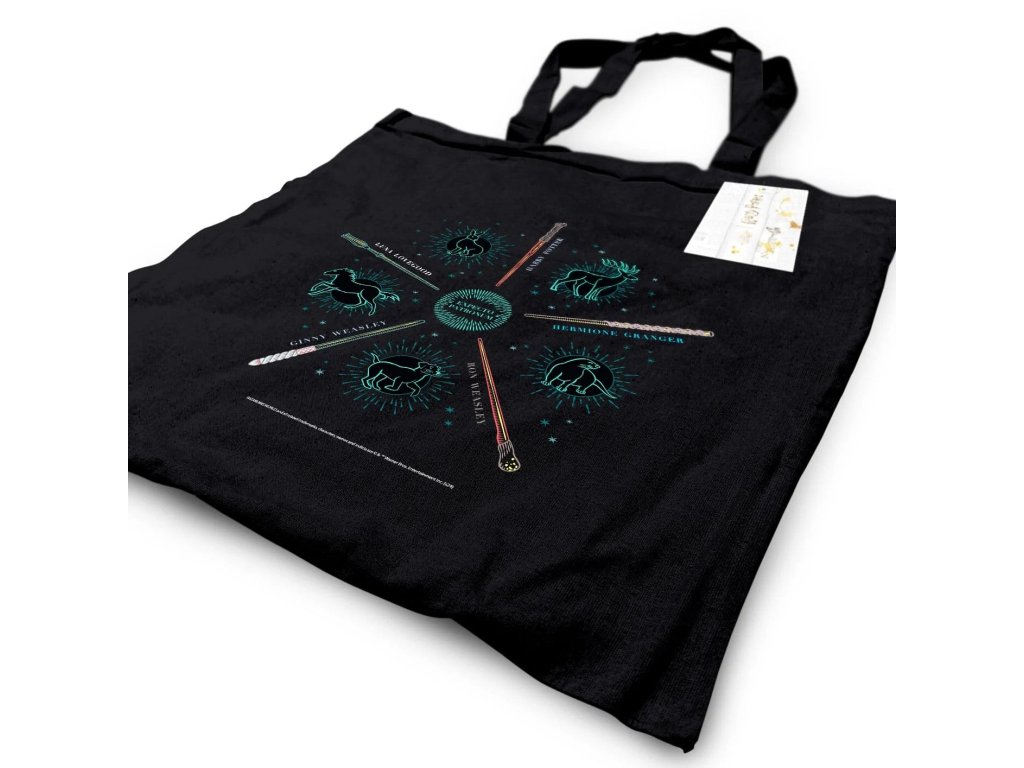 Expecto Patronum! Vyprav se na nákup nebo na cesty spolu s Patrony známých čarodějů a kouzelnic z Harryho Pottera. Na tašce najdeš hůlky a partony hrdinů z Bradavic, jako jsou Hermiona Grangerová - vydra, Lenka Láskorádová - zajíc, Ron Weasley - teriér, Ginny Weasleyová - Kůň a nebo sám Harry Potter - jelen. Tato stylová taška tě ochrání proti mozkomorům!