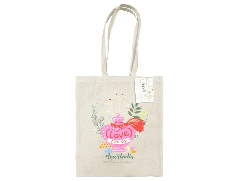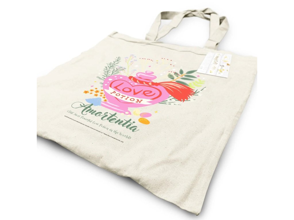 Taška s elixírem lásky z Harryho Pottera se hodí na čarovné rande, nákup i na výlet. Amorův šíp (Amortentia) je jedním z nejsilnějších lektvarů ve světě kouzelníků z Bradavic a dokáže ti přičarovat náklonnost určité osoby. Krásný dárek pro zamilované i ty po lásce toužící!