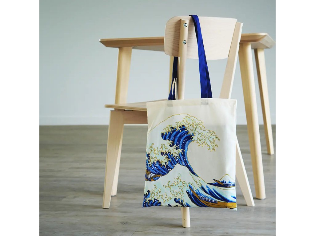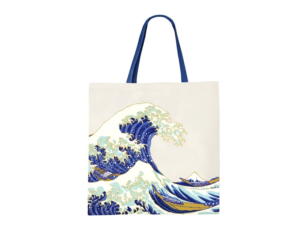 Plátěná nákupní taška s potiskem slavného díla japonského malíře Hokusaie Kacušiky - Velká vlna u pobřeží Kanagawy (神奈川沖浪裏), také známá jako Velká vlna, ti bude skvělým společníkem na nákupy, výlety nebo jen tak na každodenní nošení. Vyraž do světa a mezi tvé přátelé s krásnou taškou nebo udělej radost i jiným nadšencům japonského umění!