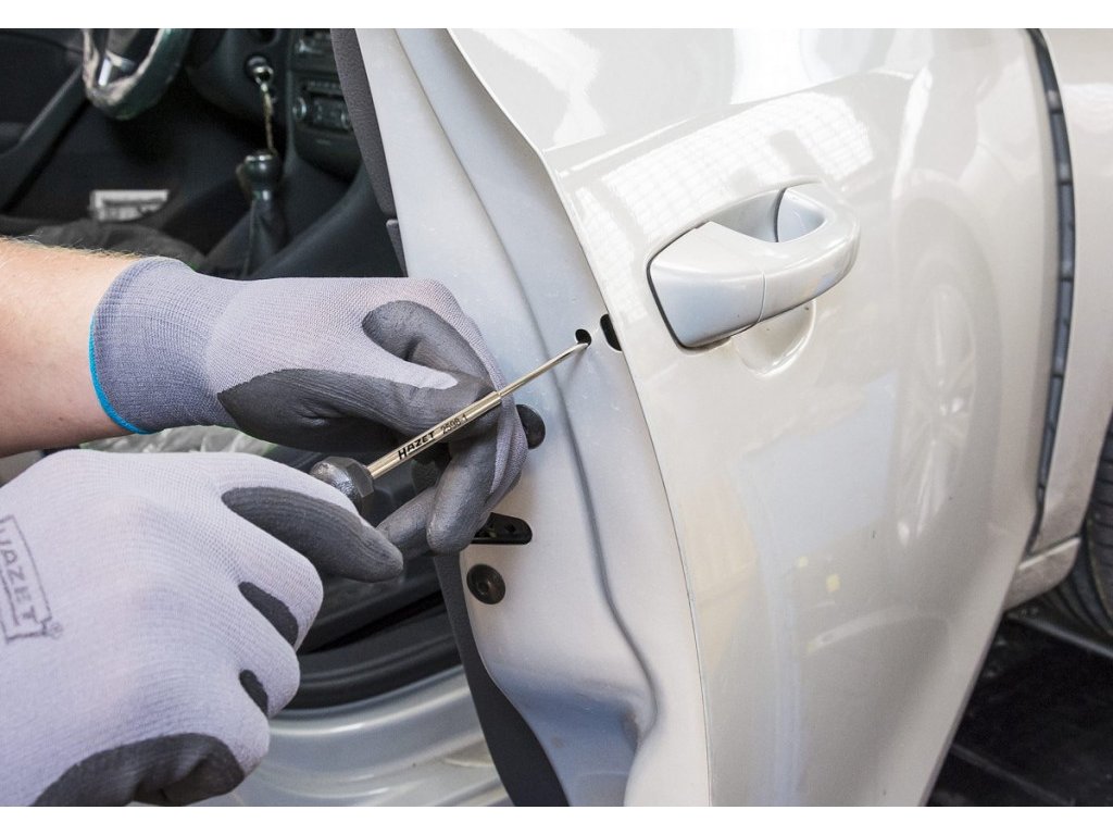 - Demontáž a montáž tělesa válcové vložky zámku (klika dvěří) u dvěří bez válcové vložky zámku (ovládání těžko přístupného zajišťovacího háčku ložiskového třmenu)