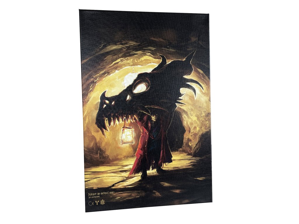 Připomeň si oblíbený fantasy gamebook Návrat do Ohňové hory s našim nástěnným obrazem na plátně! Tento nádherný obraz zachycuje ikonický motiv obálky ze série Fighting Fantasy, které jsou nezapomenutelné pro každého milovníka tohoto žánru. Každý obraz přináší do tvého domova nebo herny kousek magického světa plného dobrodružství, hrdinů a epických bitev.Autorem obrazu je Cyril Gaja.