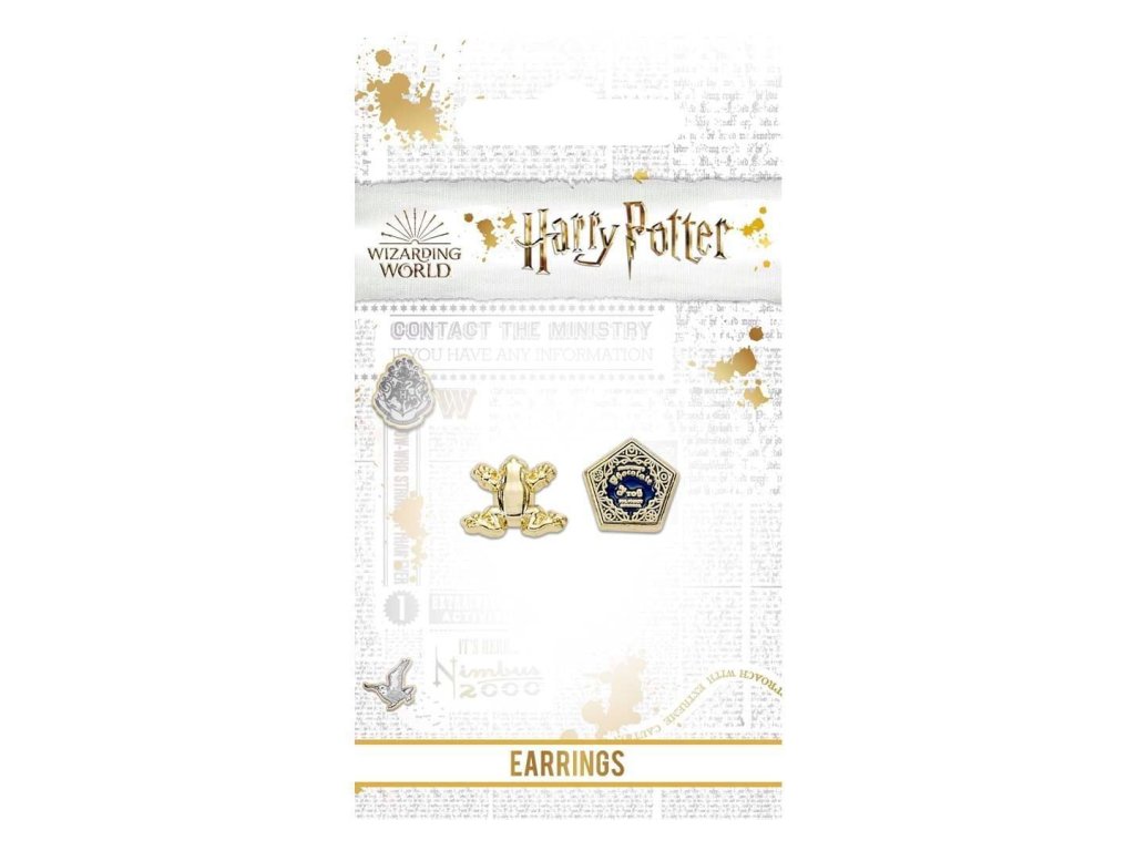 Krásné náušnice pro milovnice Harry Pottera a dobré čokolády, čokoládová žabka a pentagonová krabička se hodí k mlsání, čtení i sledování vašich oblíbených příběhů z kouzelnického světa J. K. Rowlingové! Sada obsahuje po 1 ks od každé náušnice.