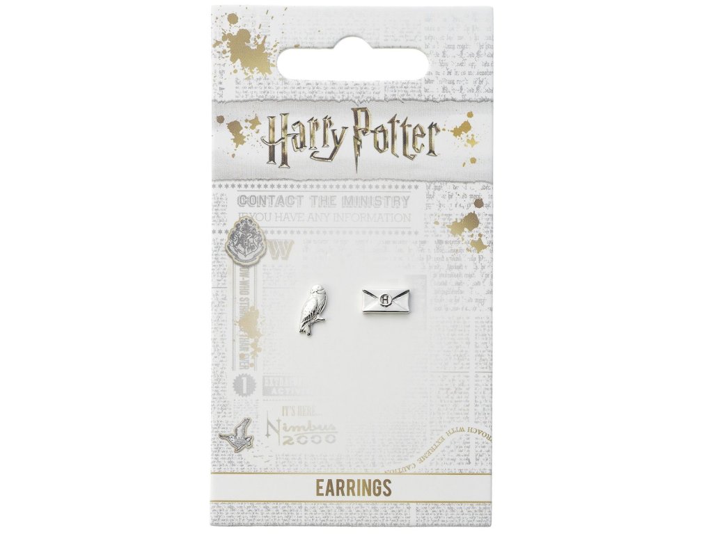 Knoflíčkové náušnice se sovou Hedvikou, věrnou kamarádkou Harry Pottera, a dopisem z Bradavic - krásný dárek pro fanynky knih a filmů z magického světa J. K. Rowlingové! Sada obsahuje po 1 ks od každé náušnice.