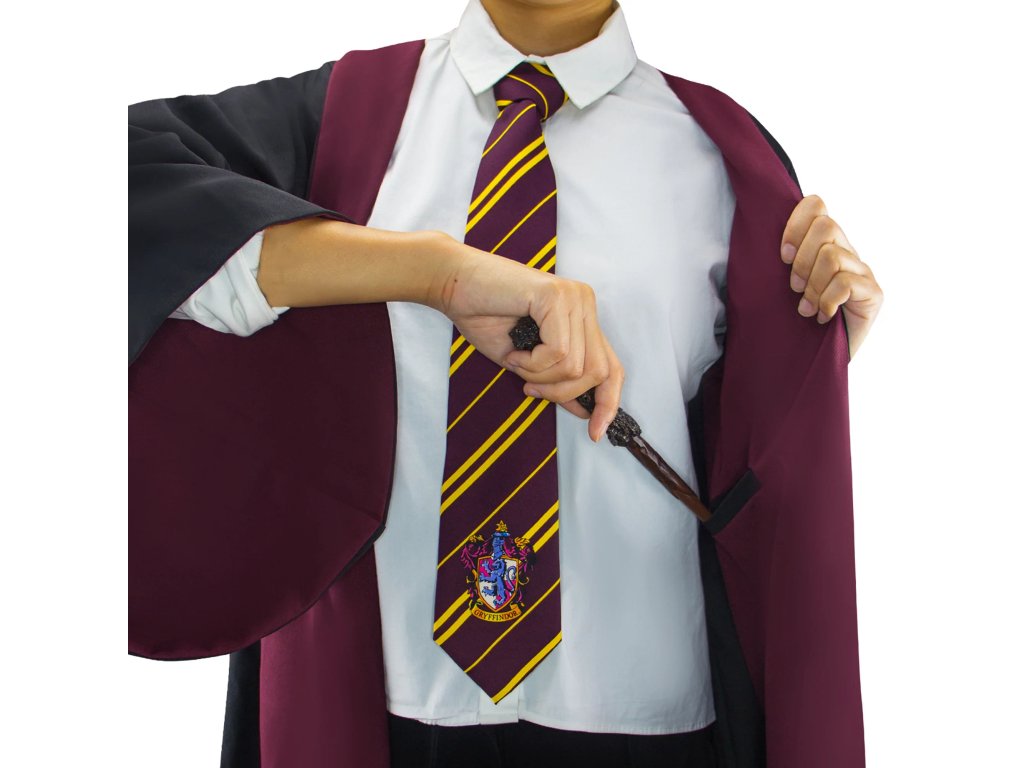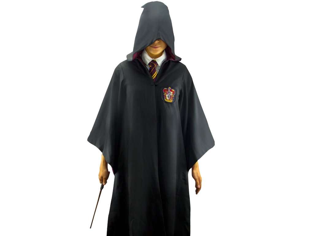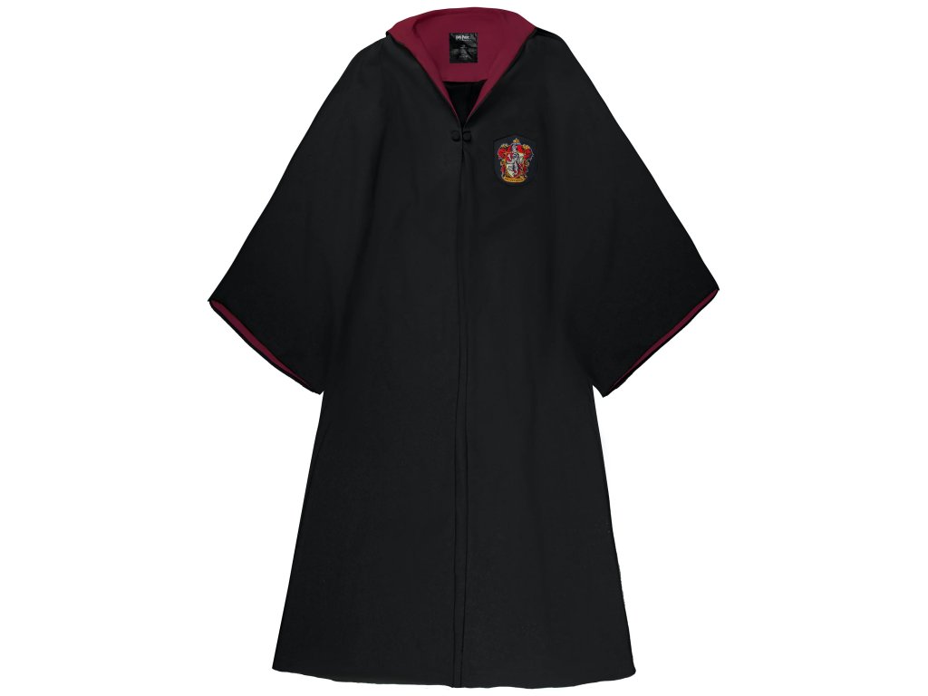 Dlouhý černý čarodějnický hábit s kapucí, vínově podšitý. Je zhotoven dle filmové předlohy bradavických hábitů studentů Nebelvíru z Harryho Pottera. Přesně takovýto hábit nosil Harry Potter, Hermiona Grangerová nebo Ron Weasley. Hábit je ideální prát na ruční praní do 40 stupňů, nesušit v sušičce na prádlo, žehlit přes navlhčenou bavlněnou látku.