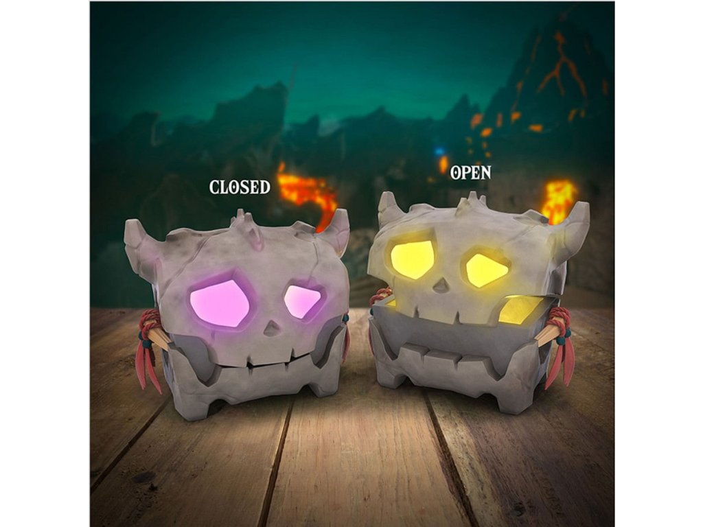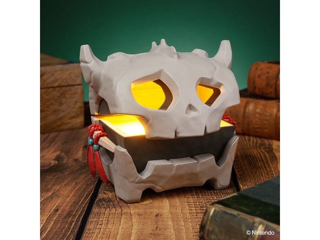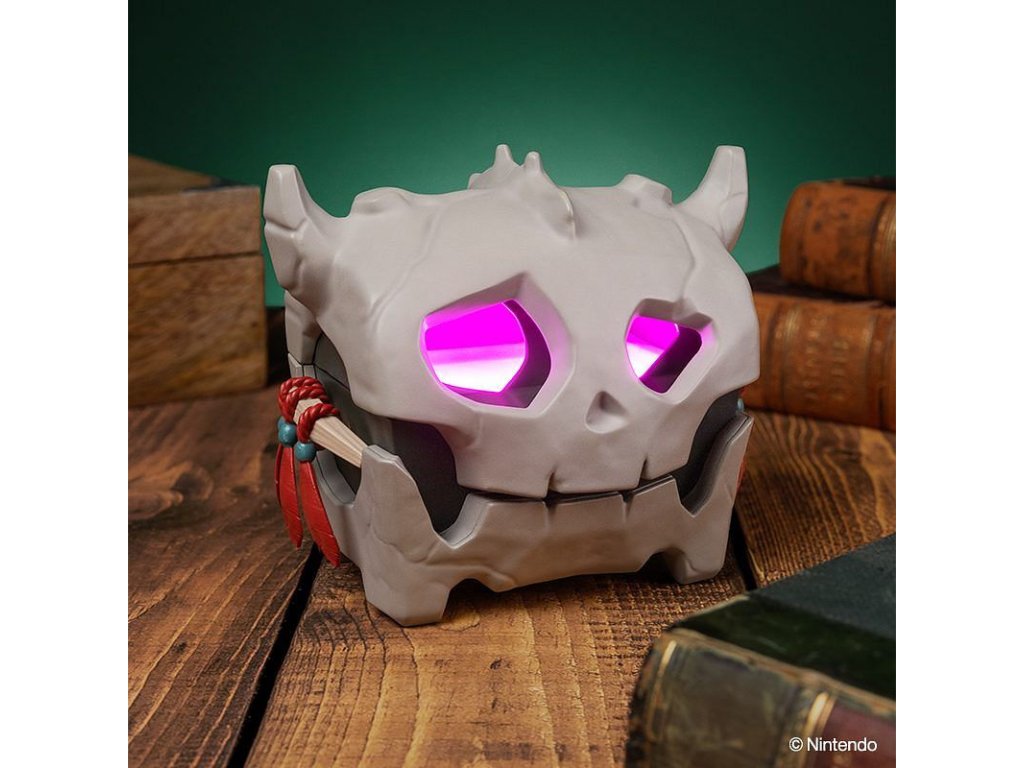 Stmívá se, ale nemáš náladu rozsvěcovat? Přenes se do království Hyrule se stolním světýlkem v podobě Bokoblina - prťavého poťouchlého démonka a nepřítele princezny z Nintendo hry The Legend of Zelda. Lampička má dva barevné světelné módy - odpovídají nastavení Bokobliní tlamy. Pokud je zavřená, svítí fialově, když otevřeš čelisti, skřetí hlava zaskřehotá bchdiearrr, ozve se znělka ze hry a světlo se promění na žuté. Přenes kousek Zeldina dobrodružství na svůj stůl! Bokobliní kebule je široká 14,4 cm a napájí se 3 x AAA bateriemi, které nejsou součástí balení.