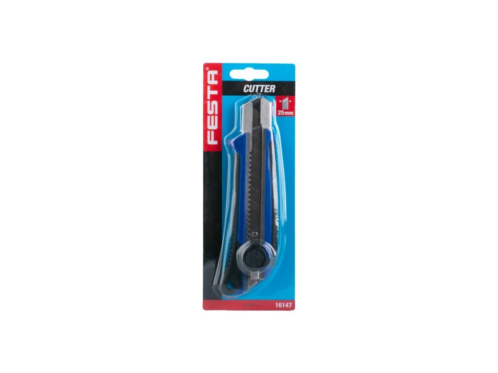 Odlamovací nůž FESTA 25mm, kvalitní materiály, ergonomický tvar s protiskluznou úpravou, kovová lišta, odolná šroubková aretace, blistr.