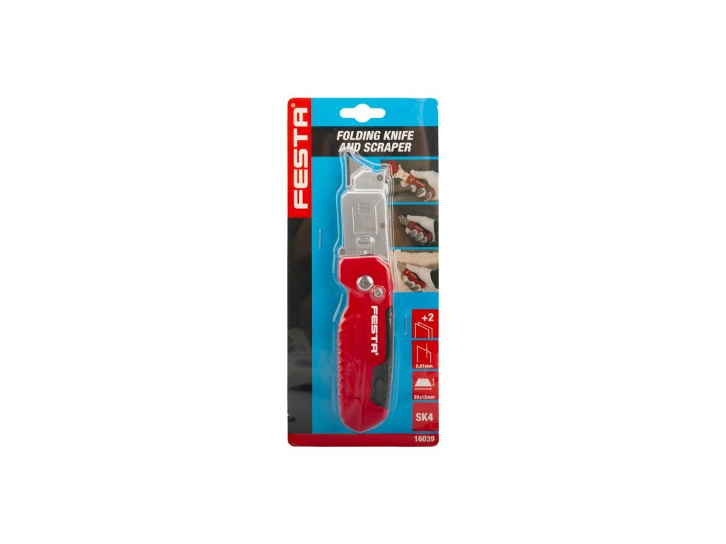 - zavírací nůž / škrabka s výměnnou čepelí